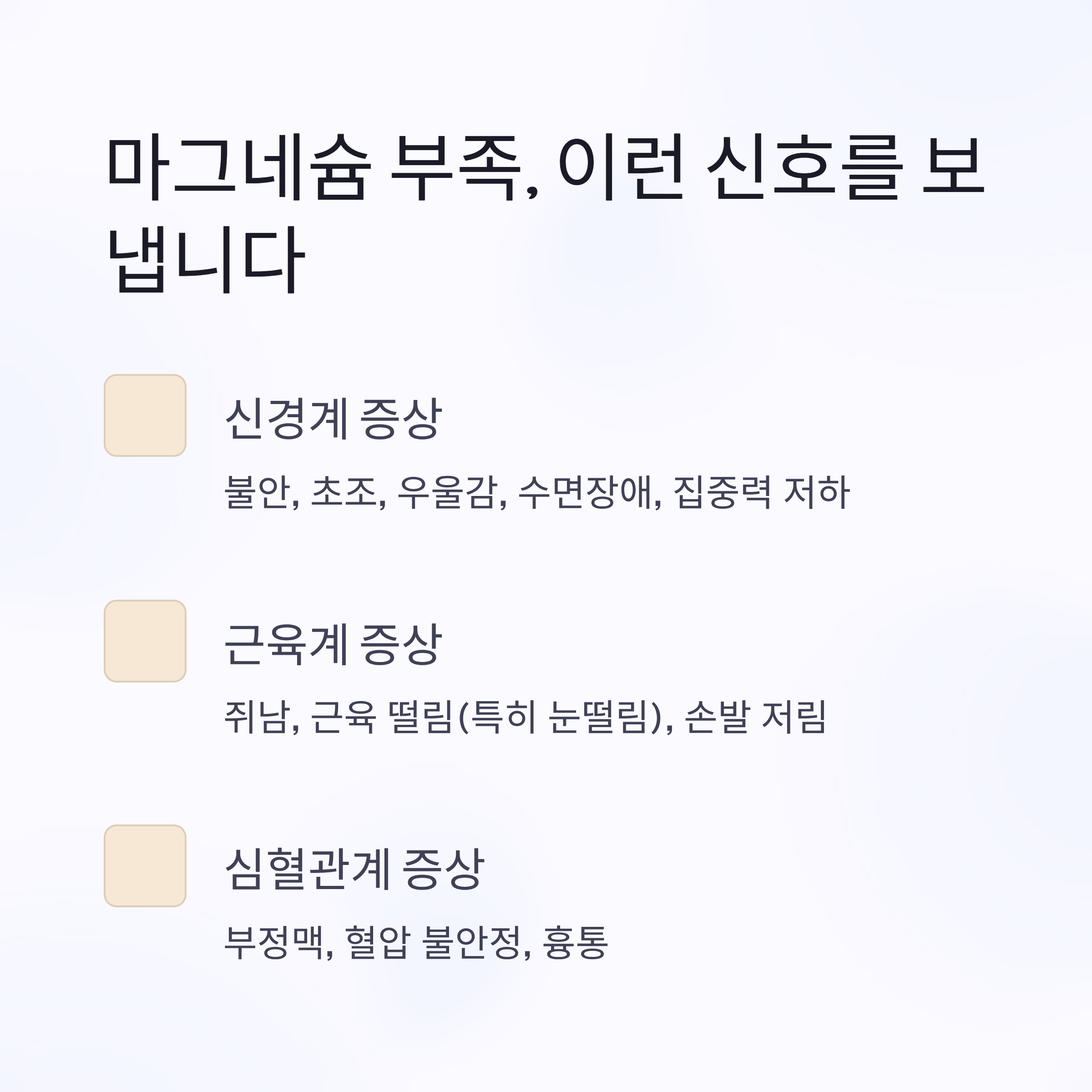 2. 마그네슘 부족 시 나타나는 증상