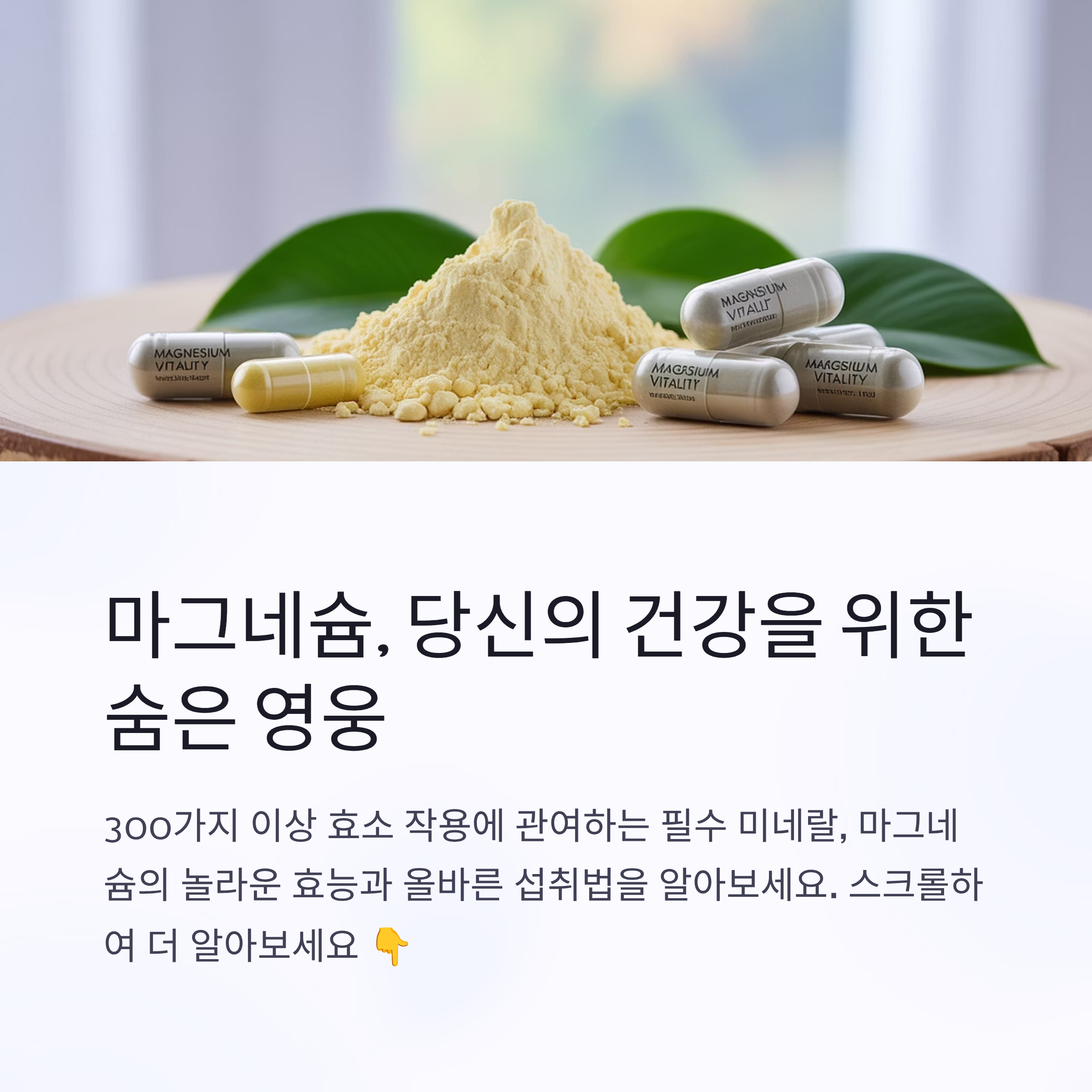 마그네슘은 우리 몸에서 300가지 이상 효소 작용에 관여하는 필수 미네랄로, 건강에 매우 중요한 역할을 합니다. 아래에 마그네슘 효능 부작용, 부족 증상, 복용법 및 복용 시간까지 체계적으로 정리해 드릴게요.