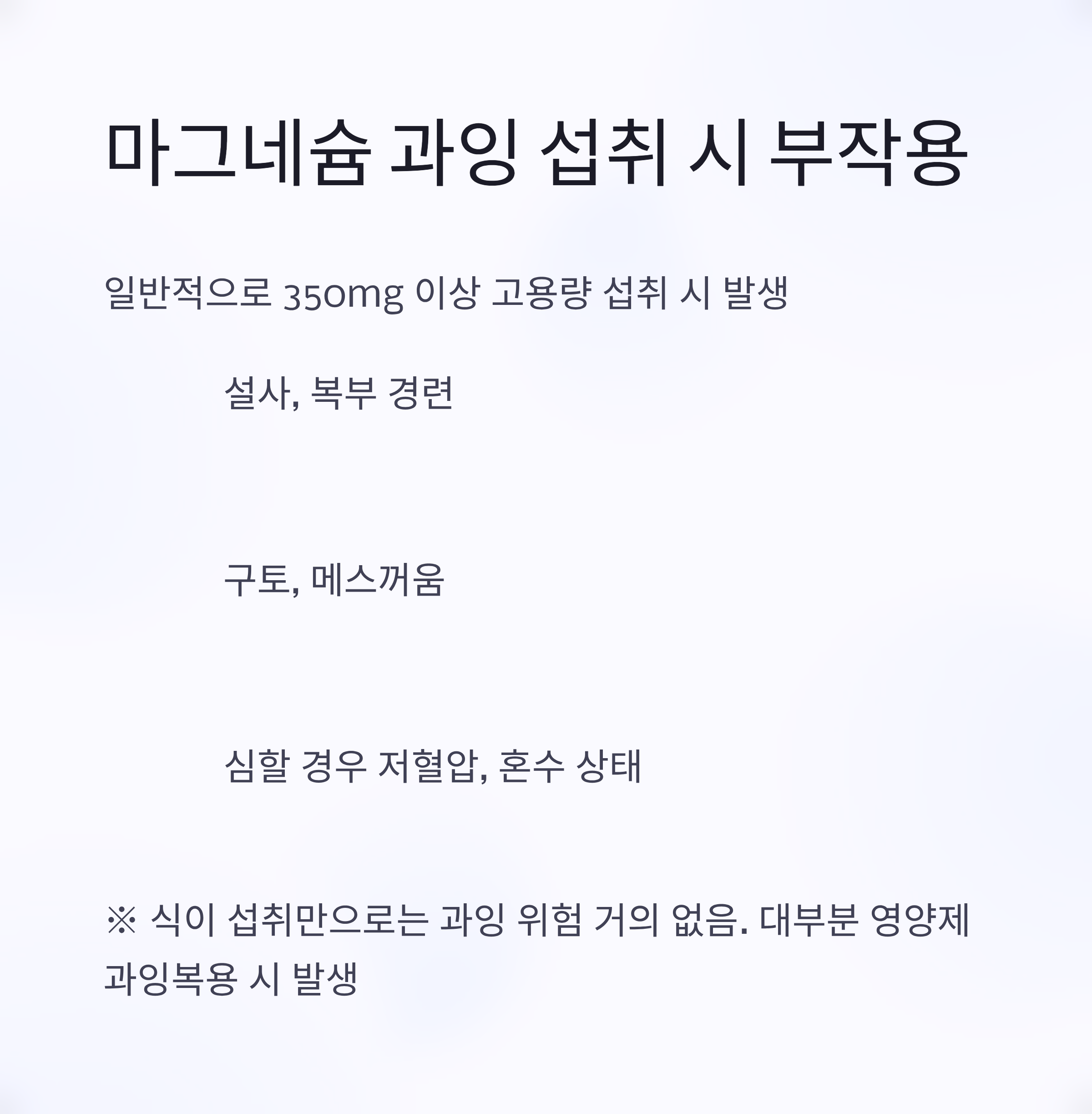 과다 섭취 시 부작용 (보통 350mg 이상 고용량 시)