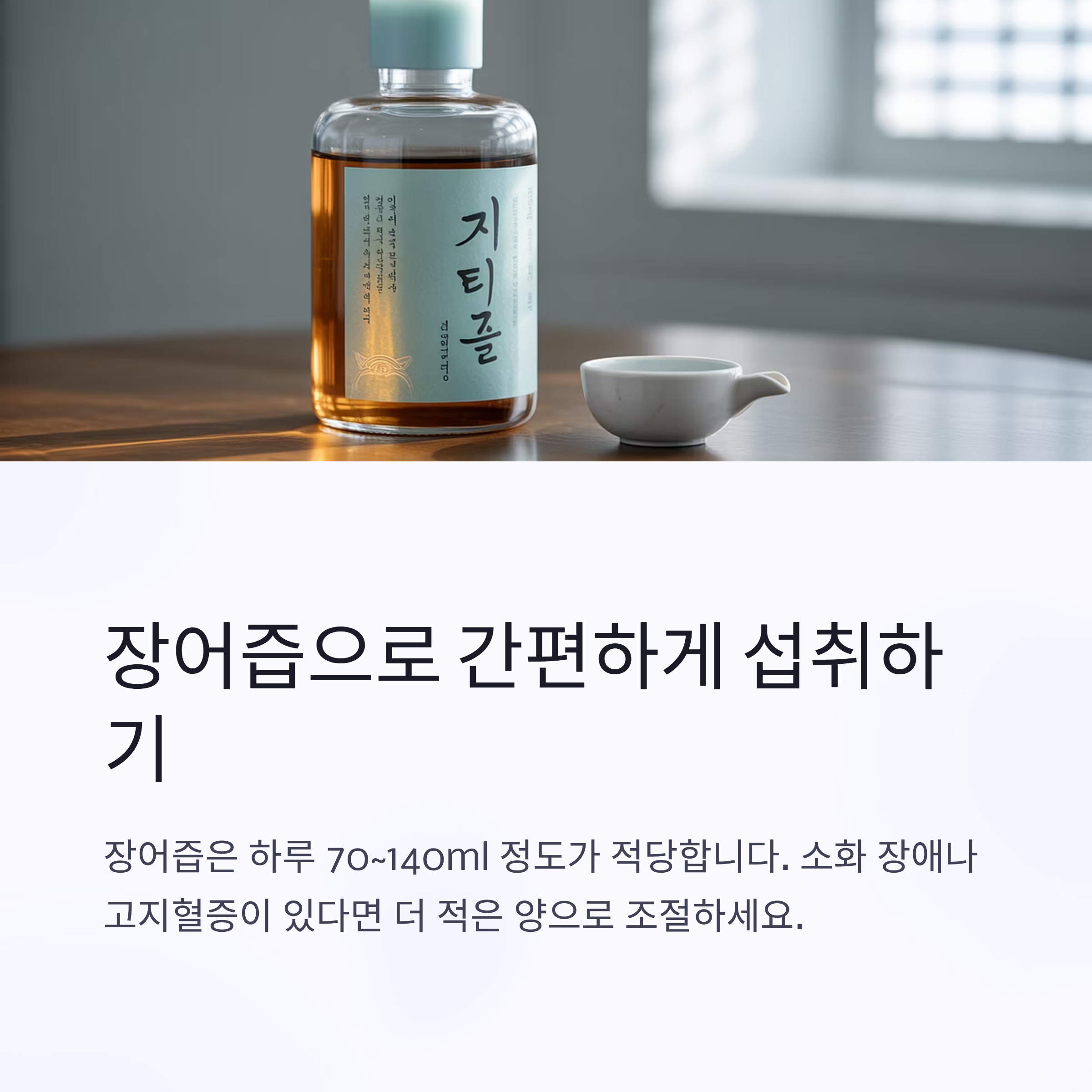 - 장어즙(진액 형태): 하루 70~140ml