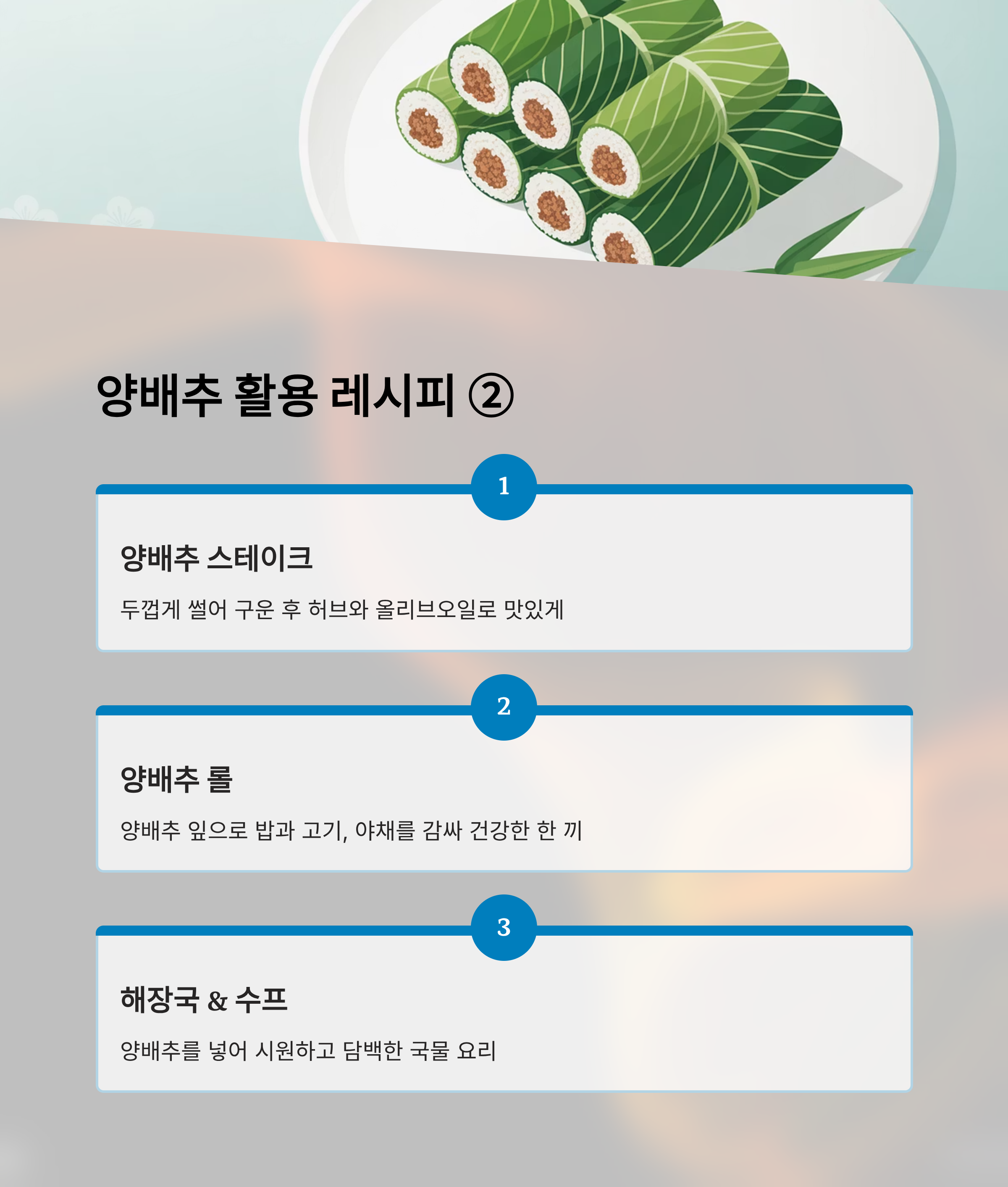 - 해장국 & 수프: 양배추를 넣어 시원하고 담백한 국물 요리