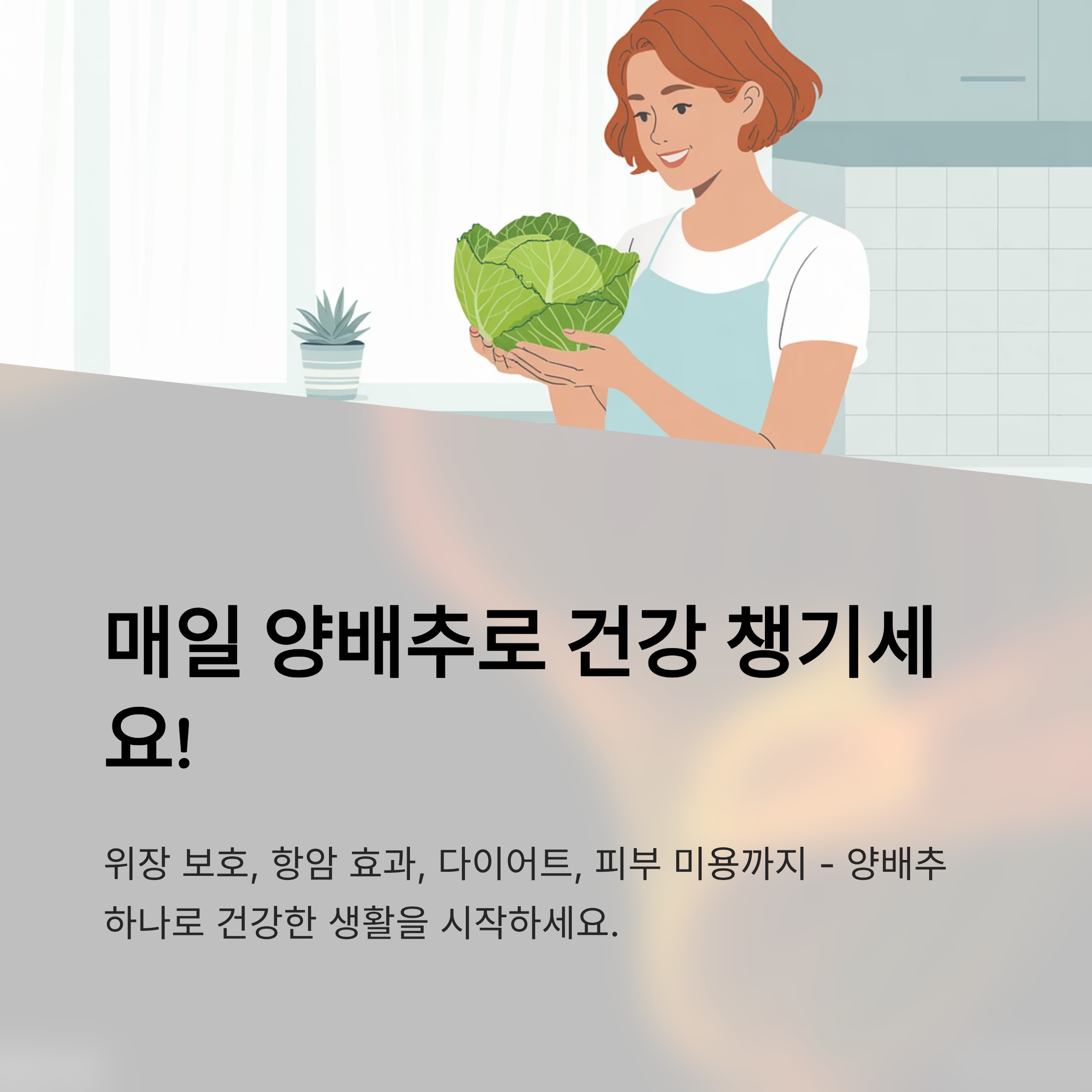 양배추는 위장 보호, 항암, 다이어트, 변비 개선 등 다양한 건강 효능이 있는 채소입니다. 다만 과다 섭취 시 소화 불편이 있을 수 있어 적정량을 유지하는 것이 중요합니다. 생식·데침·즙 등 다양한 방식으로 먹을 수 있으며, 샐러드부터 김치, 롤, 구이까지 활용 범위가 넓어 매일 식단에 손쉽게 추가할 수 있습니다.
