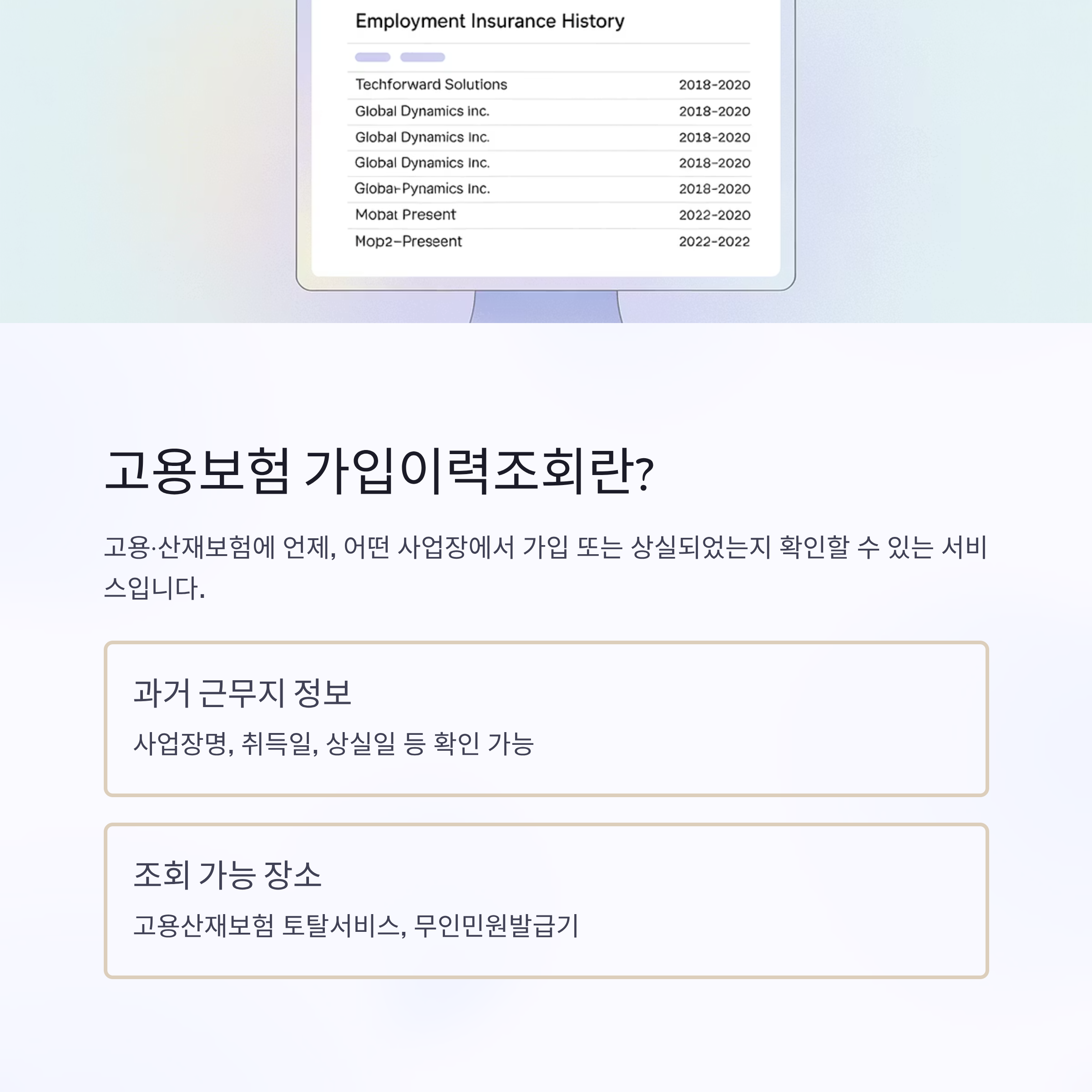 | 가입이력조회란 | 고용·산재보험의 가입 및 상실 기록 확인 |
