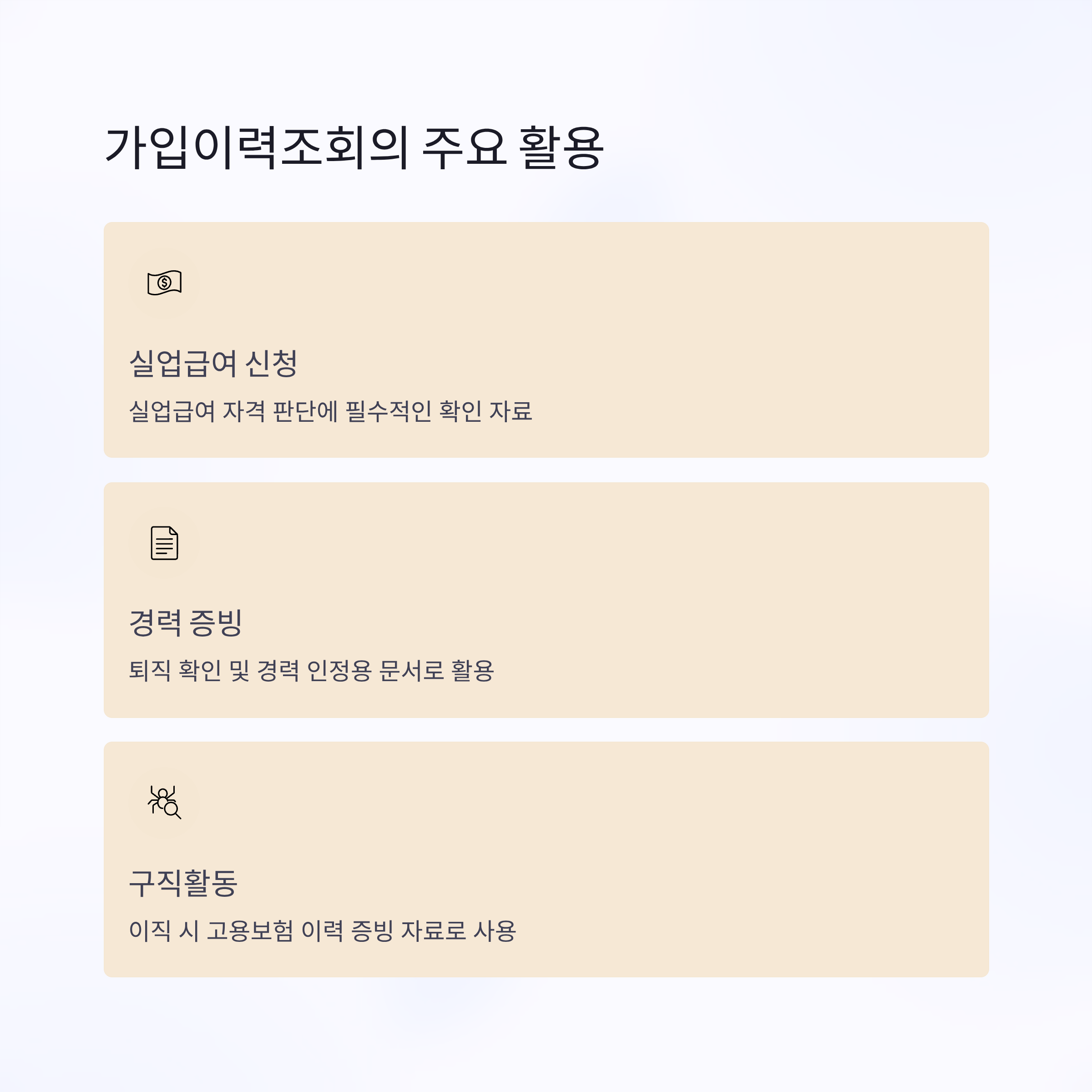 | 구직활동 | 이직 시 고용보험 이력 증빙이 필요한 경우 활용됩니다. |