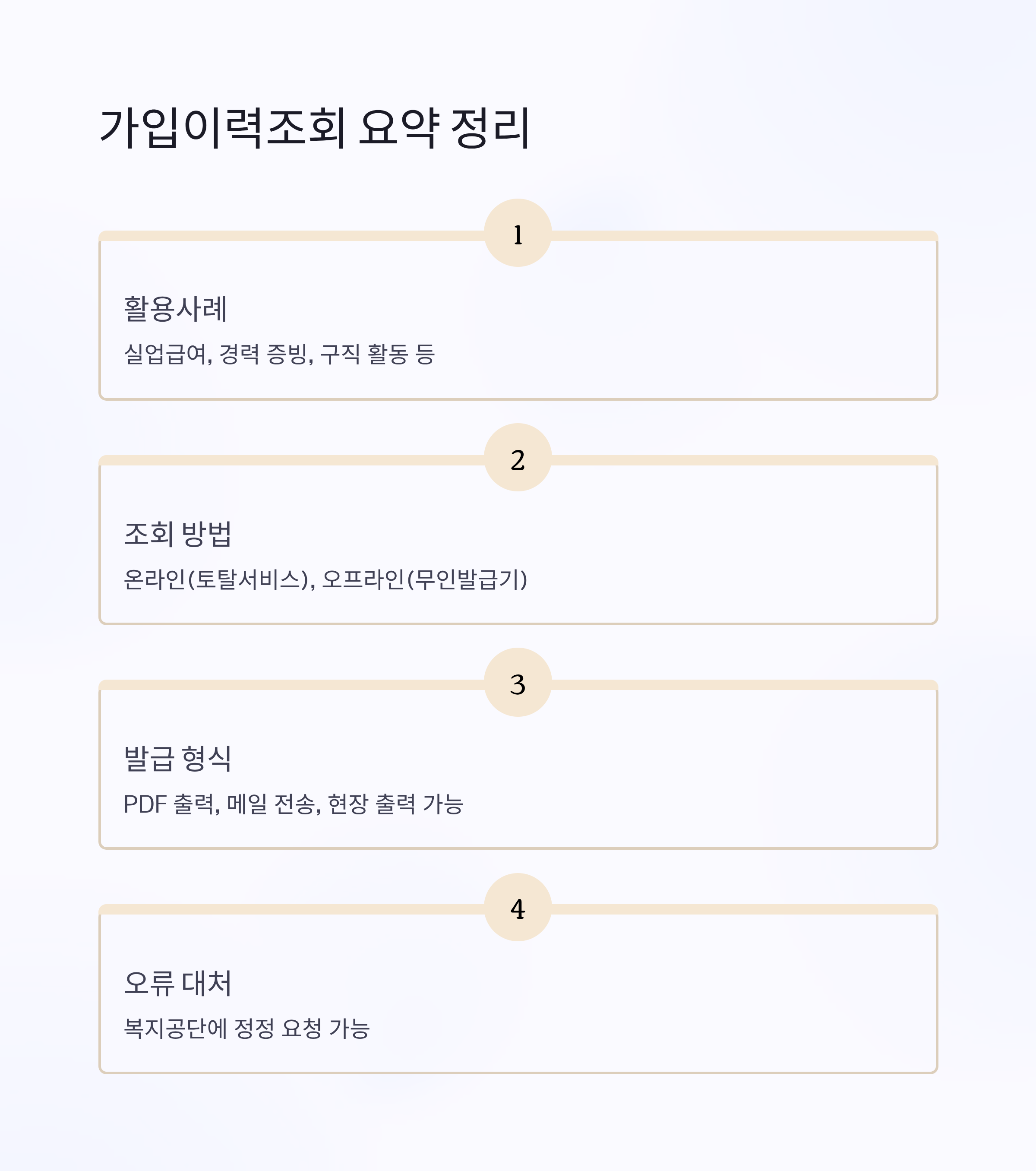 | 실업급여 신청 시 | 과거 가입 기록이 실업급여 자격 판단에 활용되므로 필수 확인 자료입니다. |