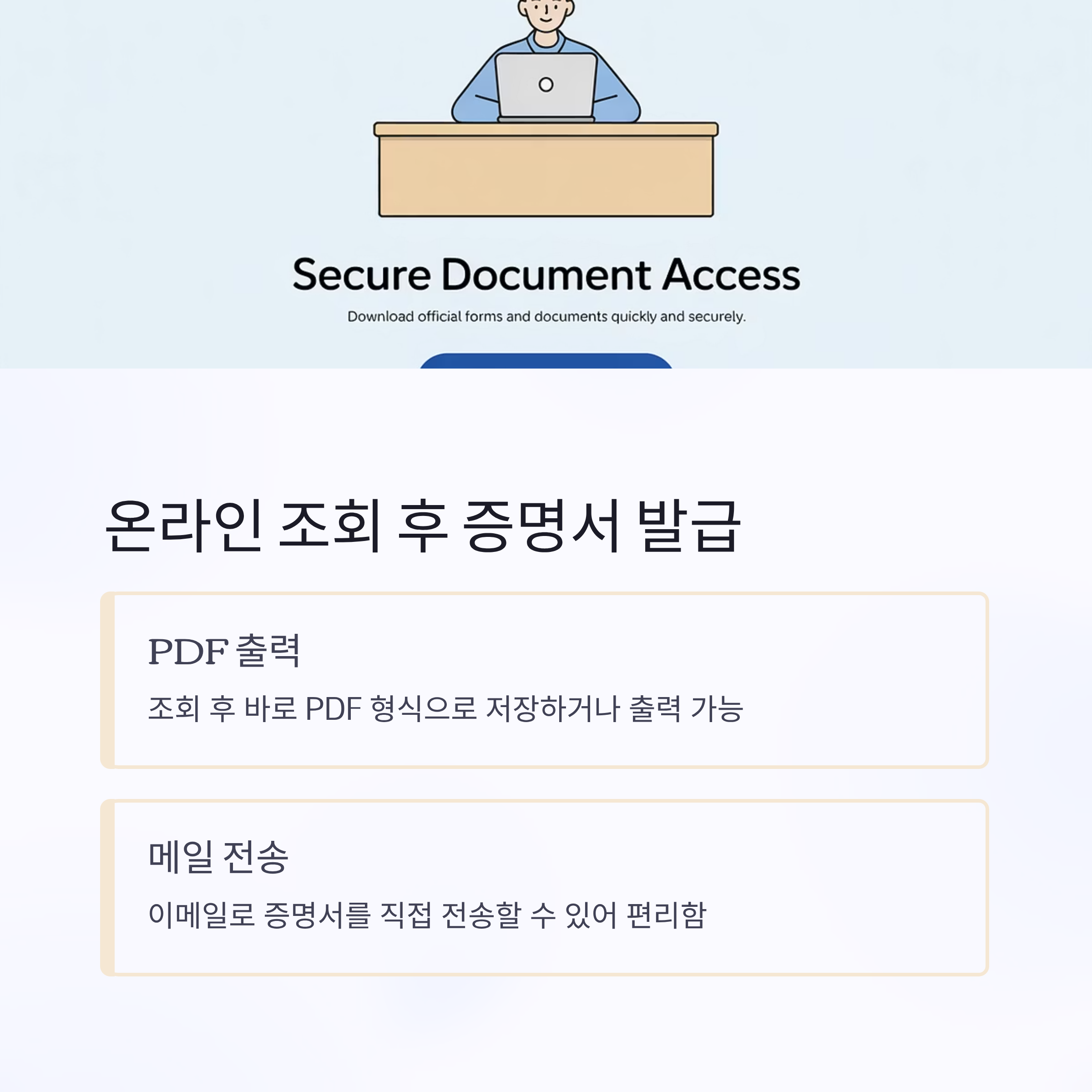 | 발급 형식 | PDF 출력, 메일 전송, 현장 출력 가능 |