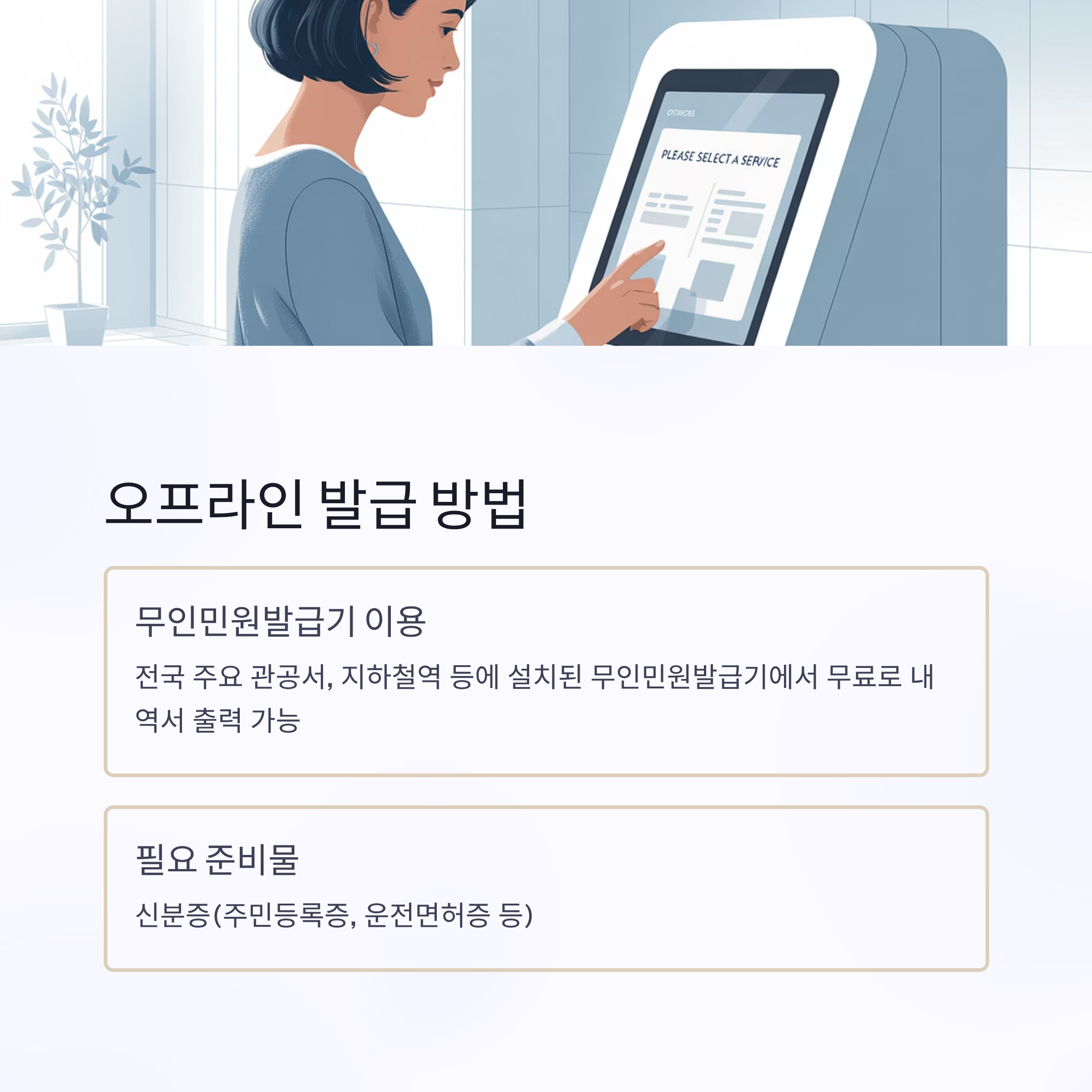 - 무인민원발급기를 통해서도 무료로 내역서 출력 가능