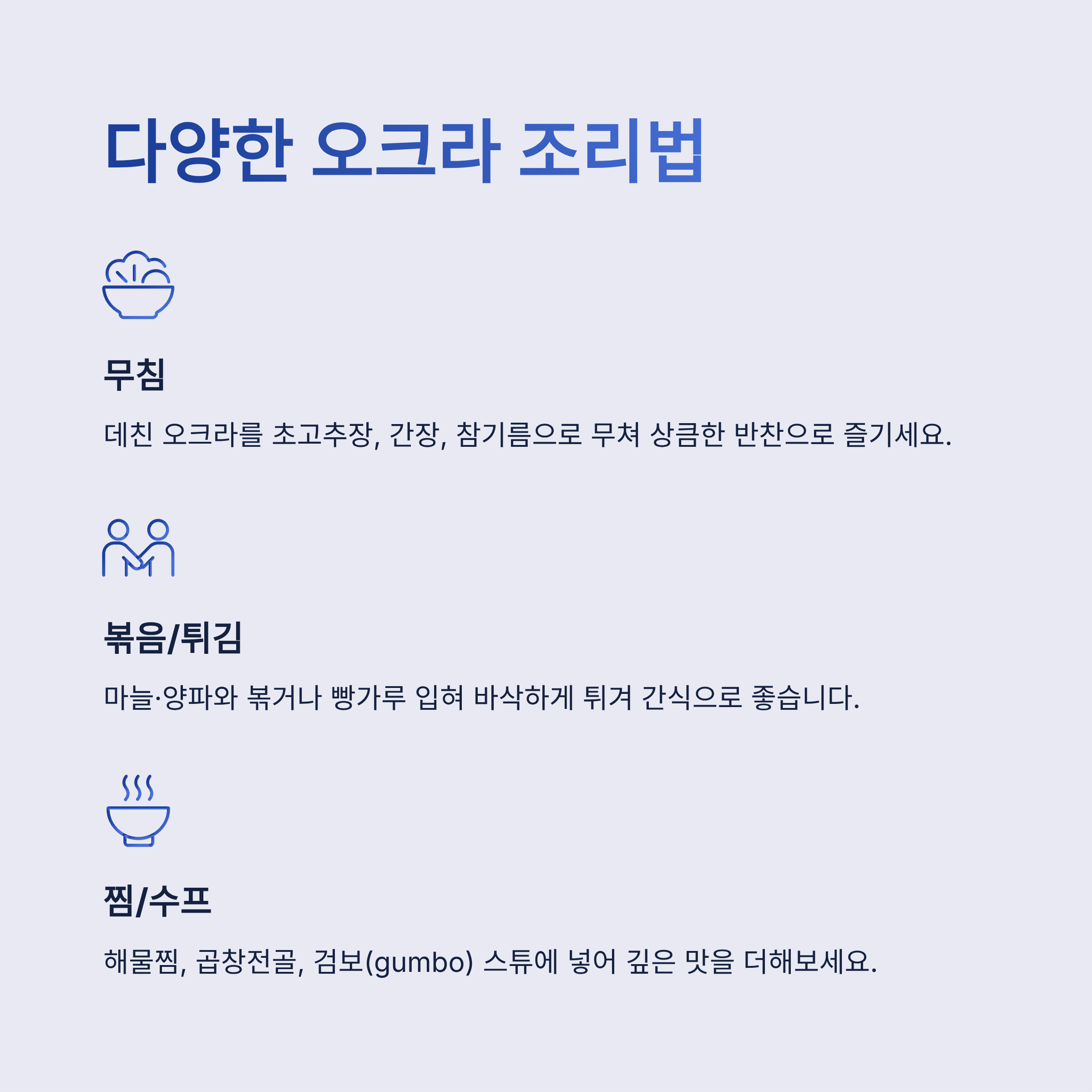 Q2. 끈적임이 부담될 때는 오크라 먹는법을 어떻게 바꾸면 좋을까요?