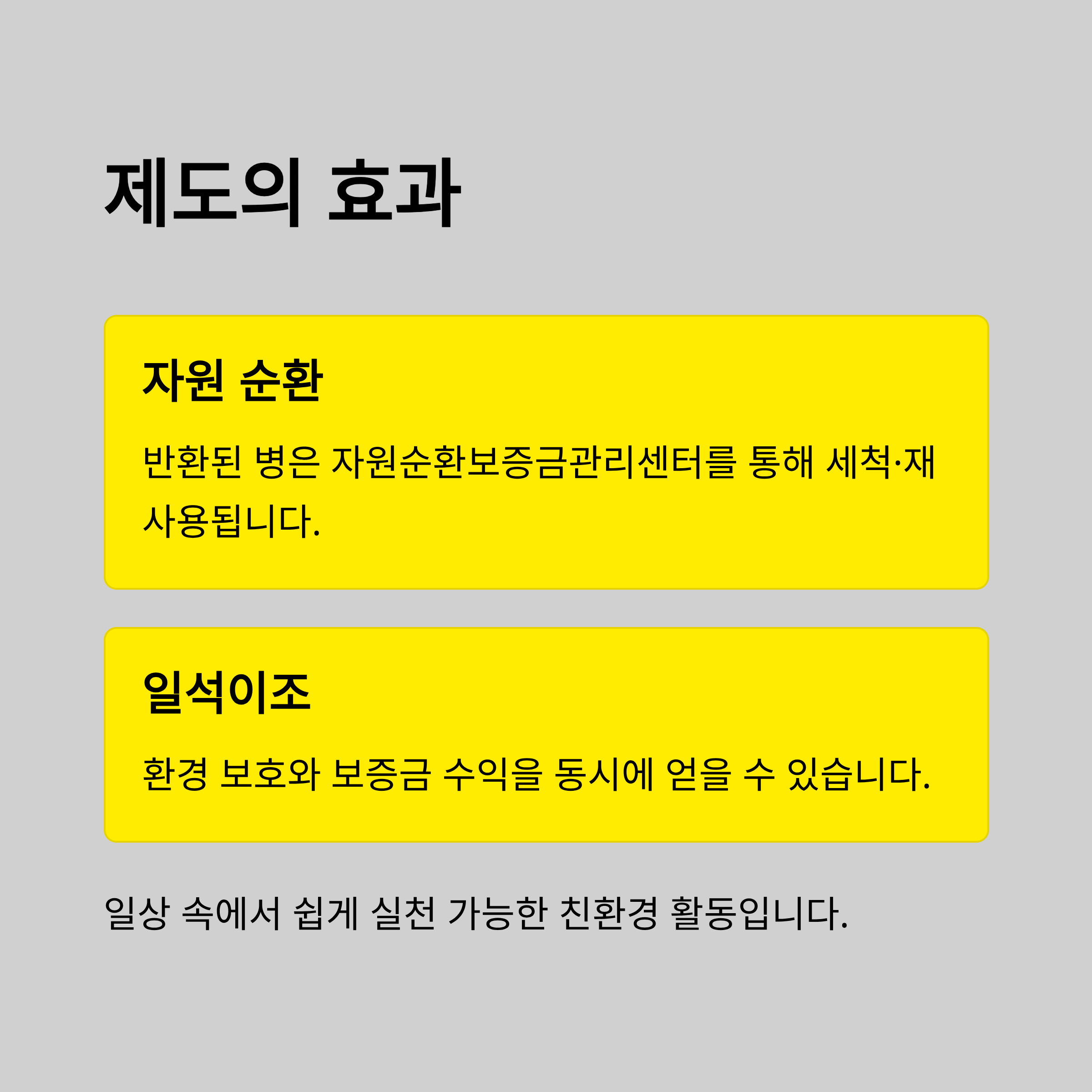 - 환경 보호 + 보증금 수익의 일석이조 효과