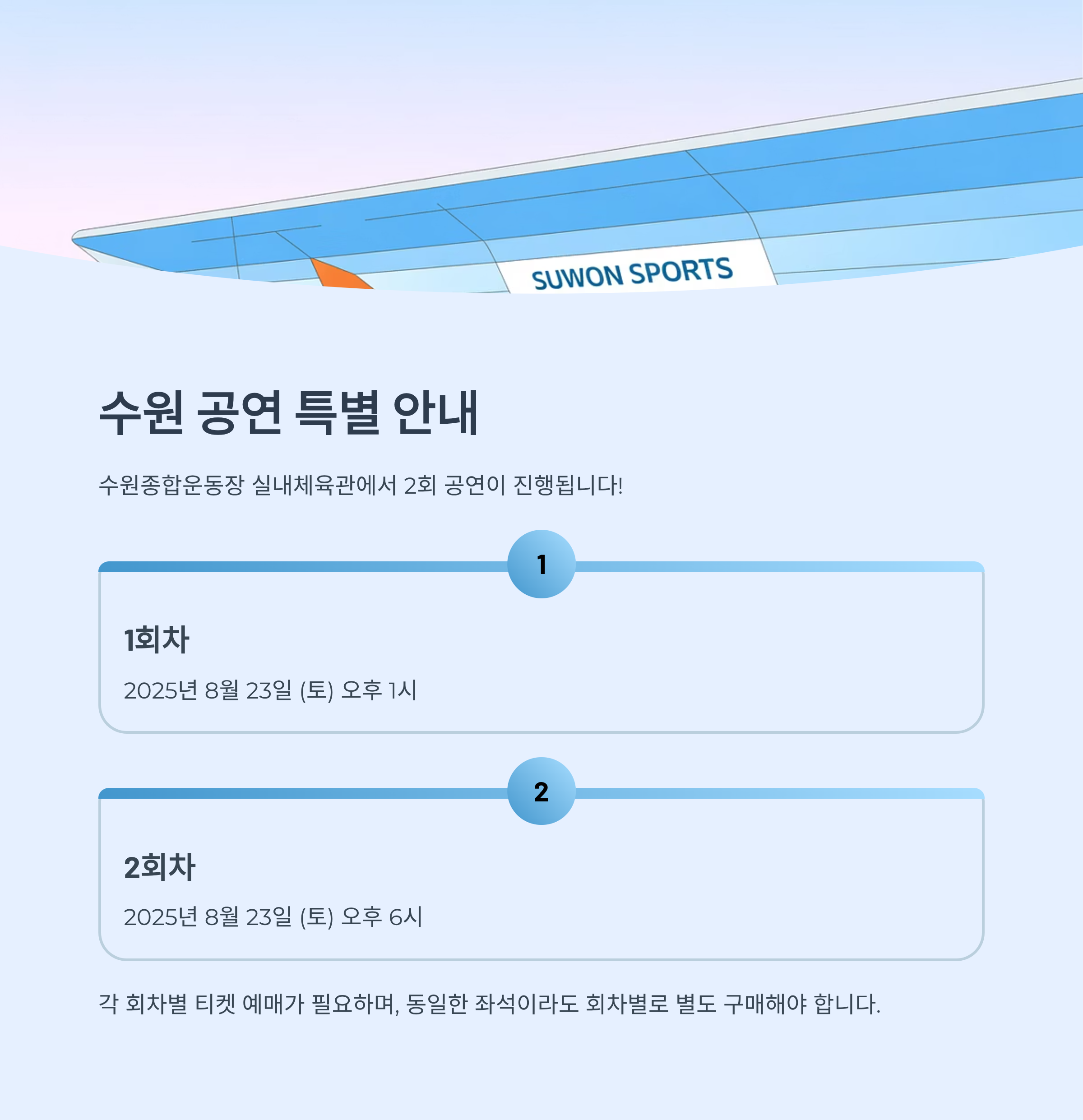 | 수원 | 2025년 8월 23일 (토) | 수원종합운동장 실내체육관 | 오후 1시, 오후 6시 (2회 공연) |