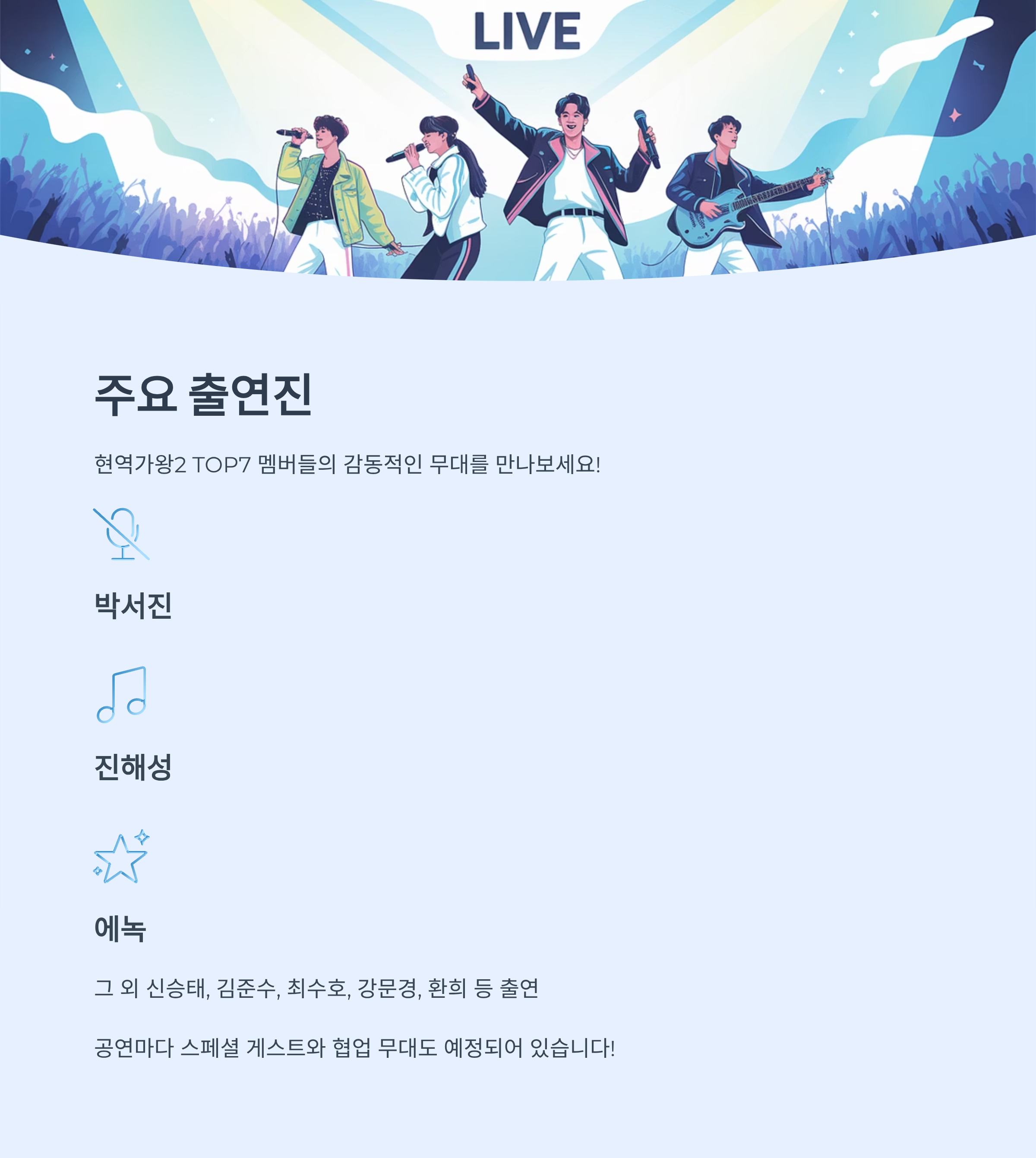 - 공연마다 스페셜 게스트와 협업 무대도 예정