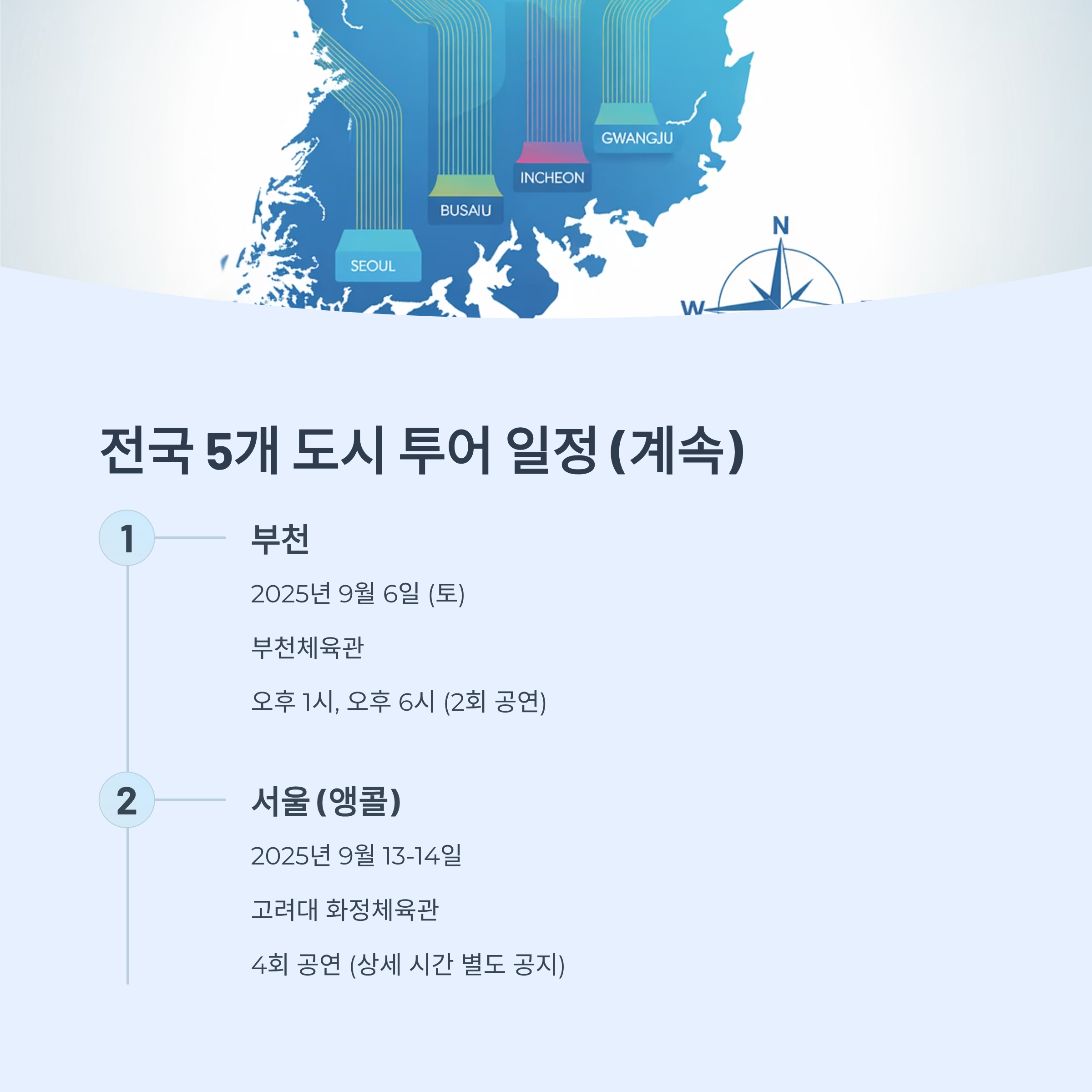 | 부천 | 2025년 9월 6일 (토) | 부천체육관 | 오후 1시, 오후 6시 (2회 공연) |