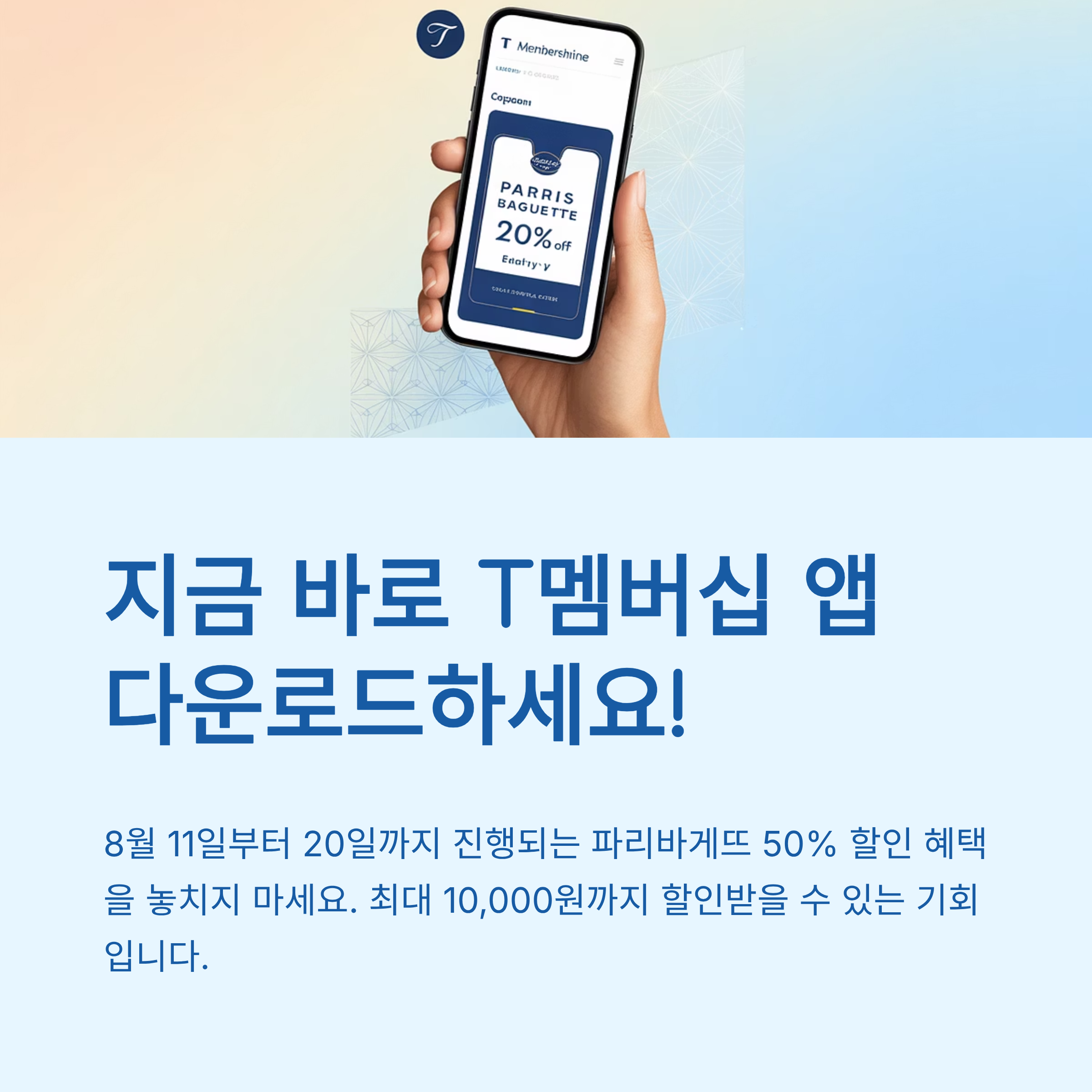 2025년 8월, SKT T멤버십 고객이라면 전국 파리바게뜨 매장에서 전 제품 50% 할인 혜택을 받을 수 있습니다. 이번 행사는 ‘T멤버십 고객 감사제’의 일환으로 진행되며, 기간과 조건만 잘 챙기면 최대 1만 원까지 할인받을 수 있습니다.