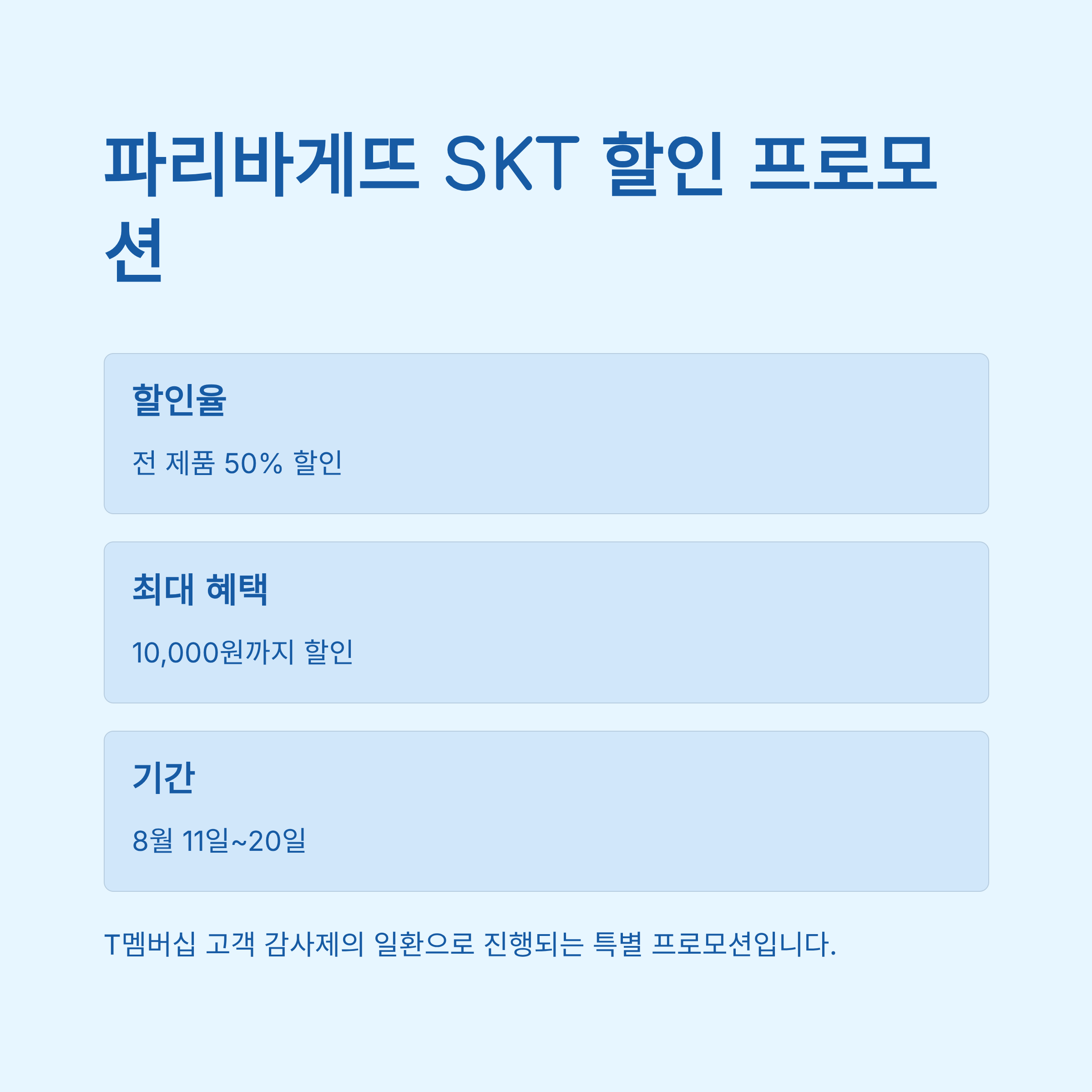 2025년 8월 파리바게뜨 skt할인 프로모션 총정리