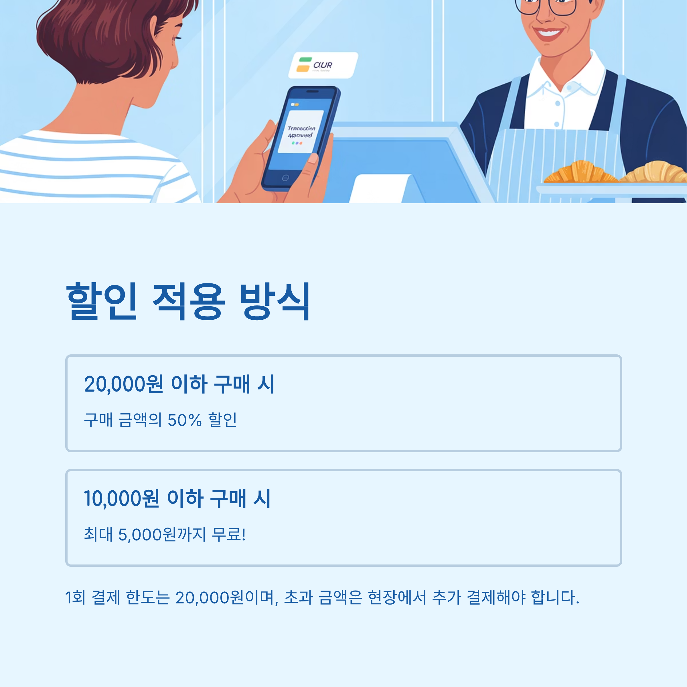 - 구매 금액이 20,000원을 초과하면 초과분은 현장 결제