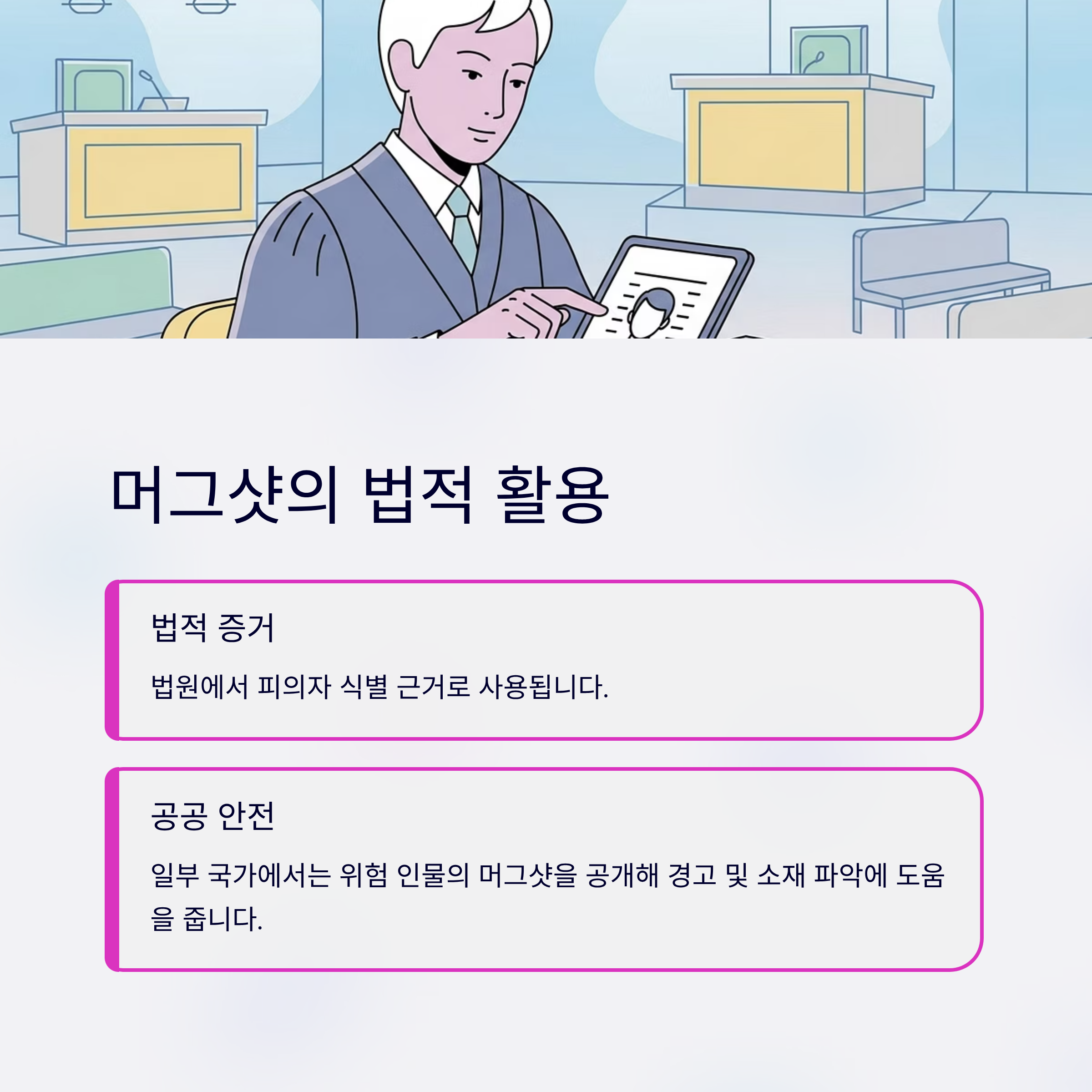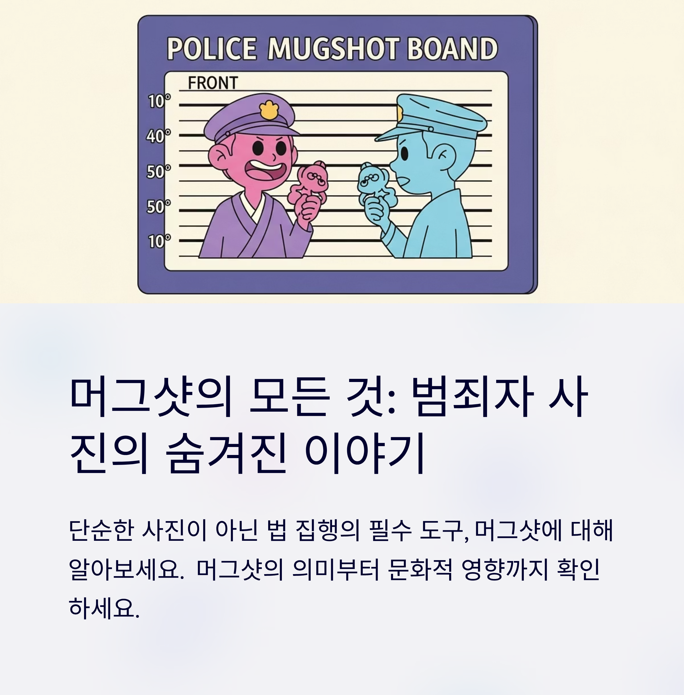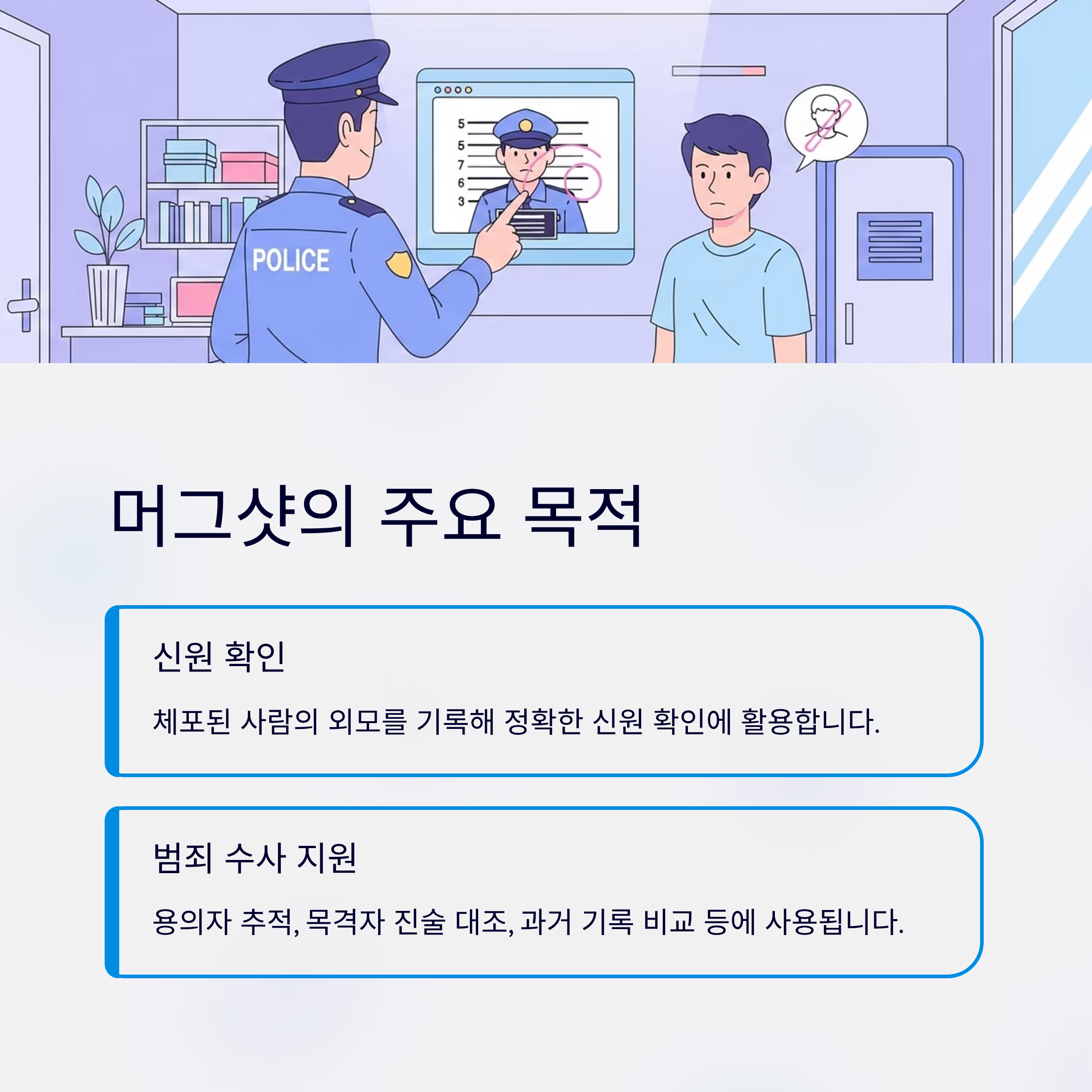 머그샷은 단순한 사진이 아니라, 법 집행의 필수 기록이자 신원 확인 도구입니다.