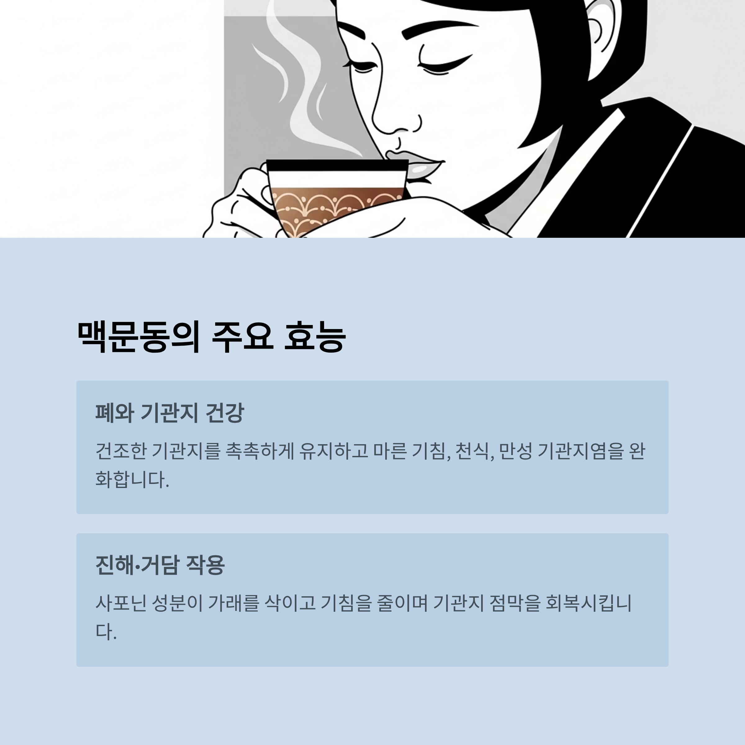 - 마른 기침, 천식, 만성 기관지염 완화