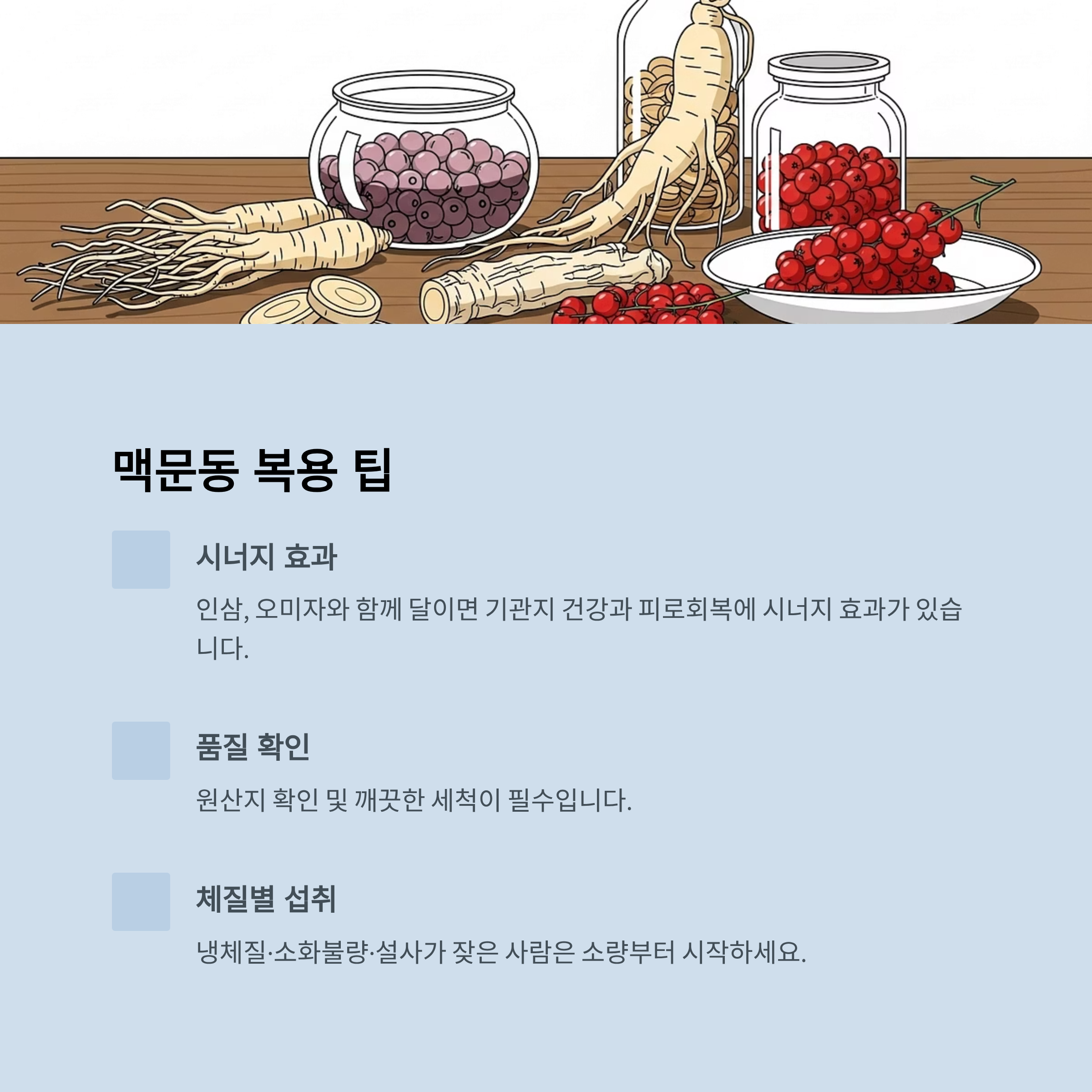 Q4. 맥문동 효능 부작용을 줄이려면 어떻게 복용해야 하나요?