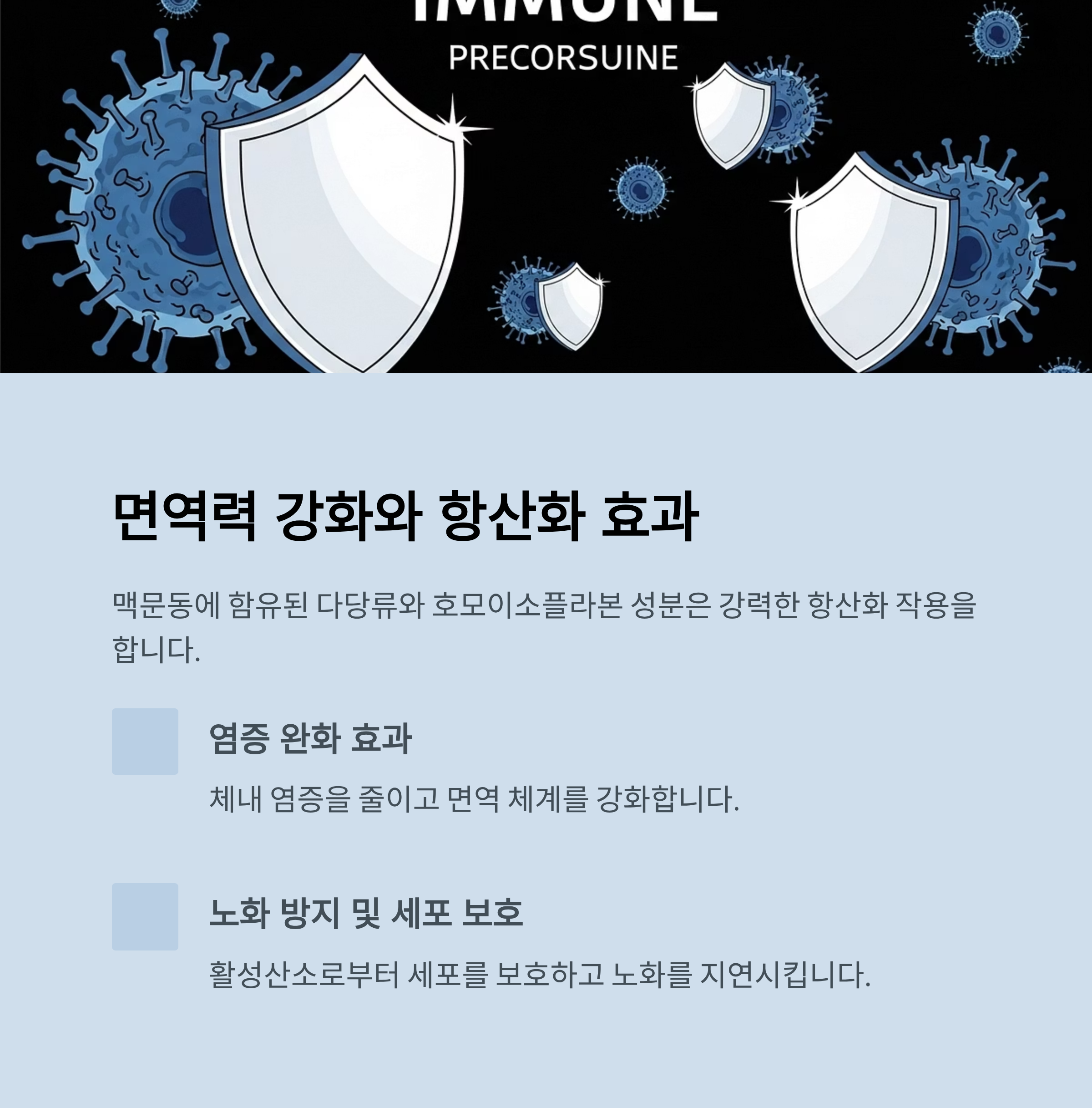 - 노화 방지, 면역력 강화, 세포 보호