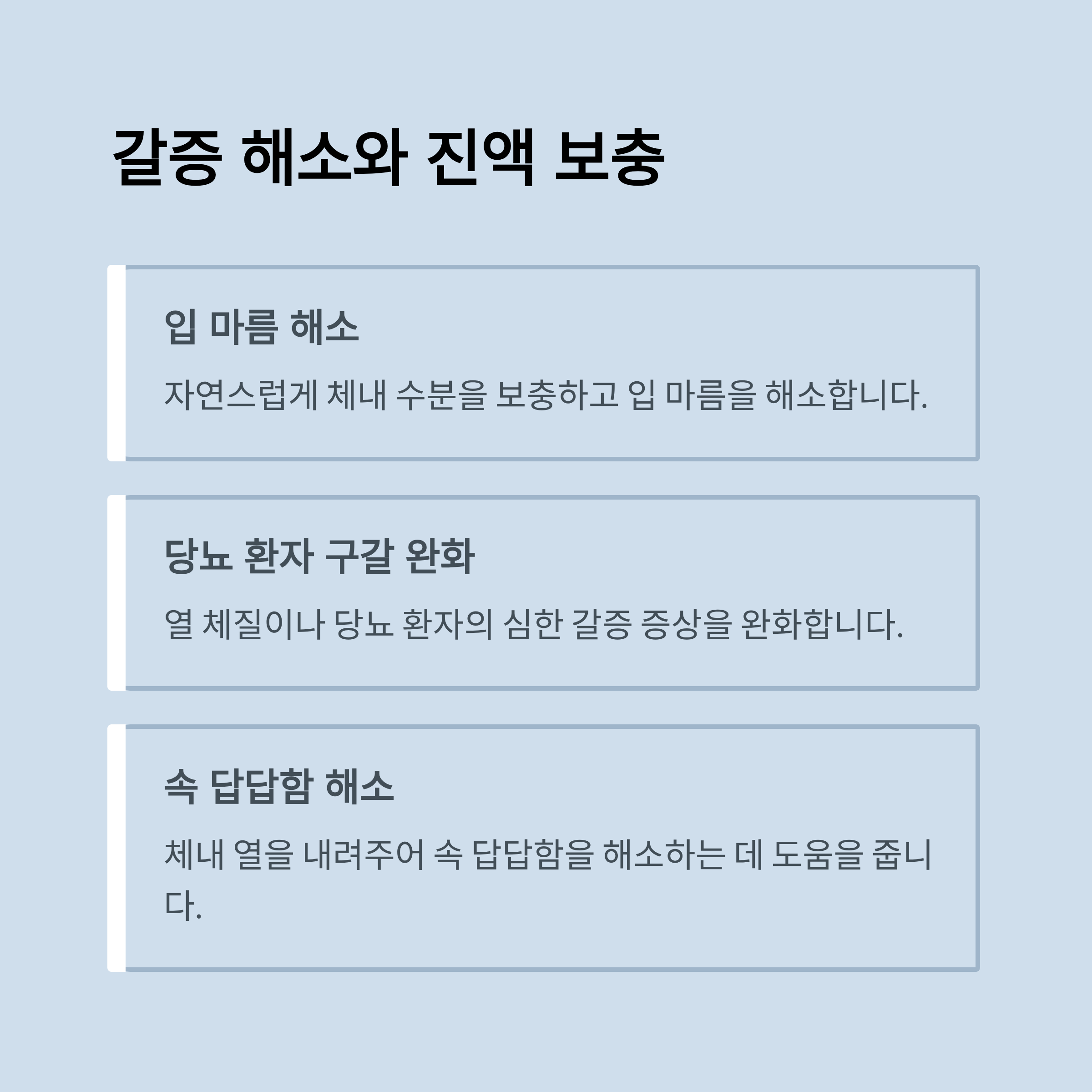 - 입 마름, 갈증, 속 답답함 해소