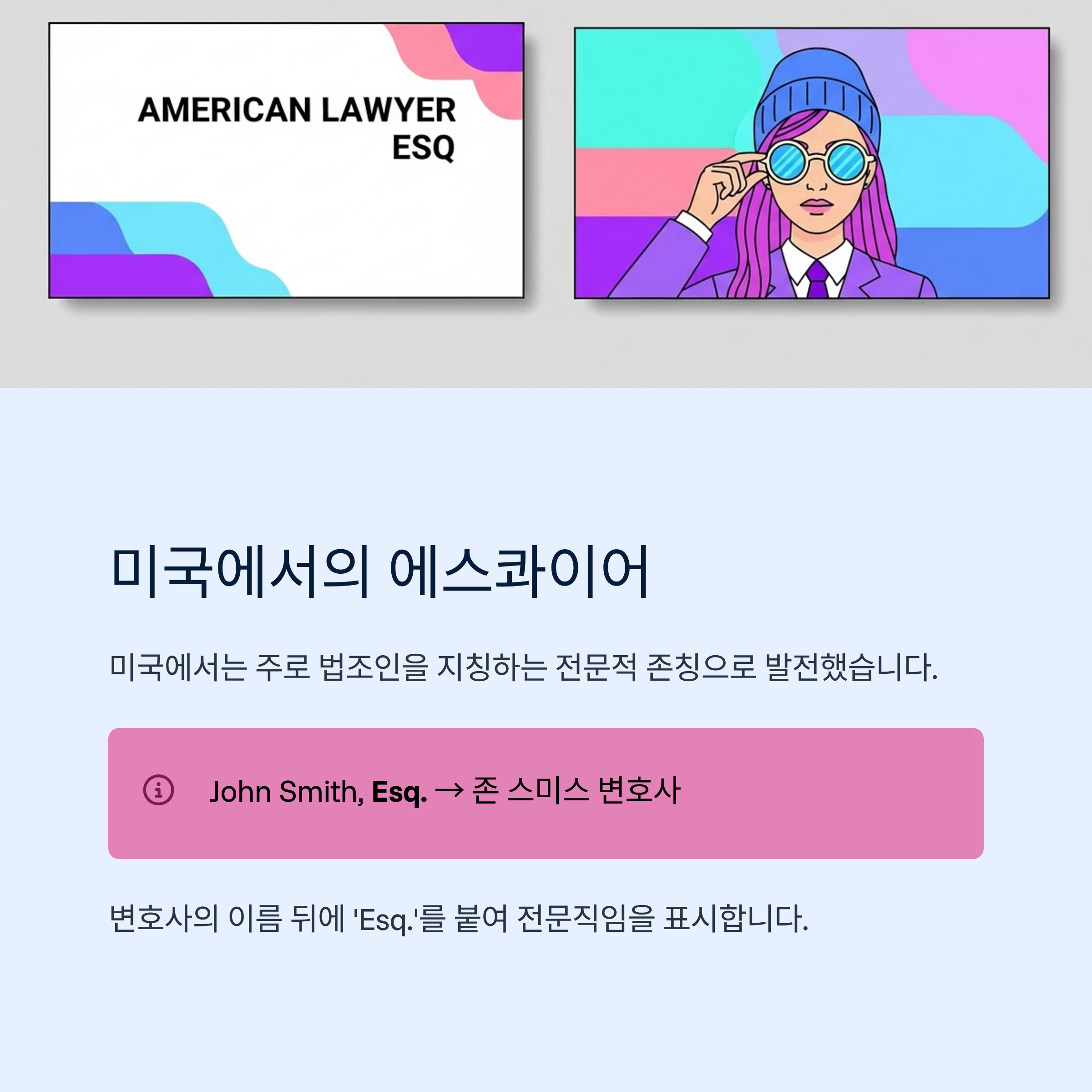 - 예: John Smith, Esq. → 존 스미스 변호사