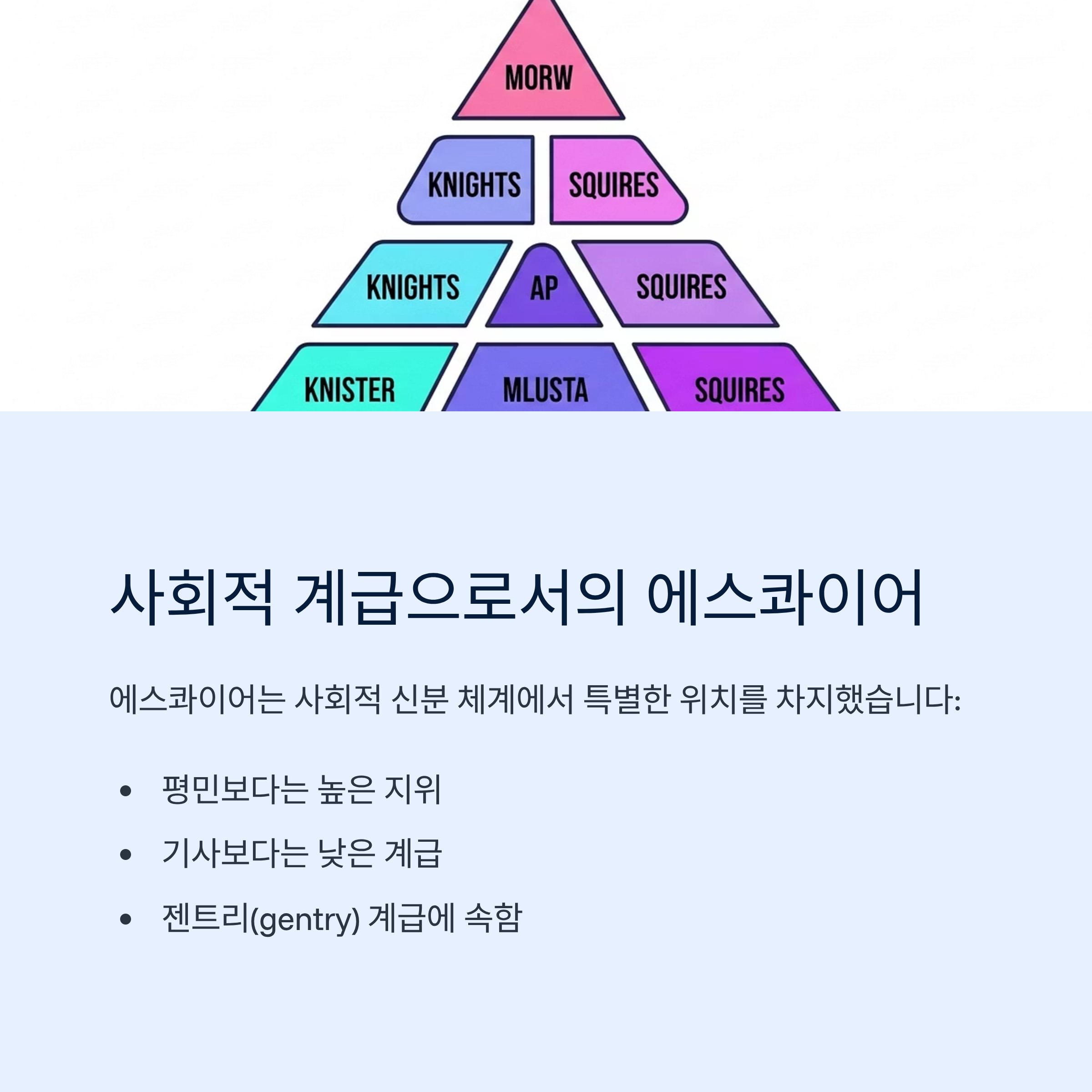 - 당시 에스콰이어는 단순한 호칭이 아닌, 귀족 가문의 젊은이가 기사로 성장하기 전 거치는 사회적 신분을 의미했습니다.