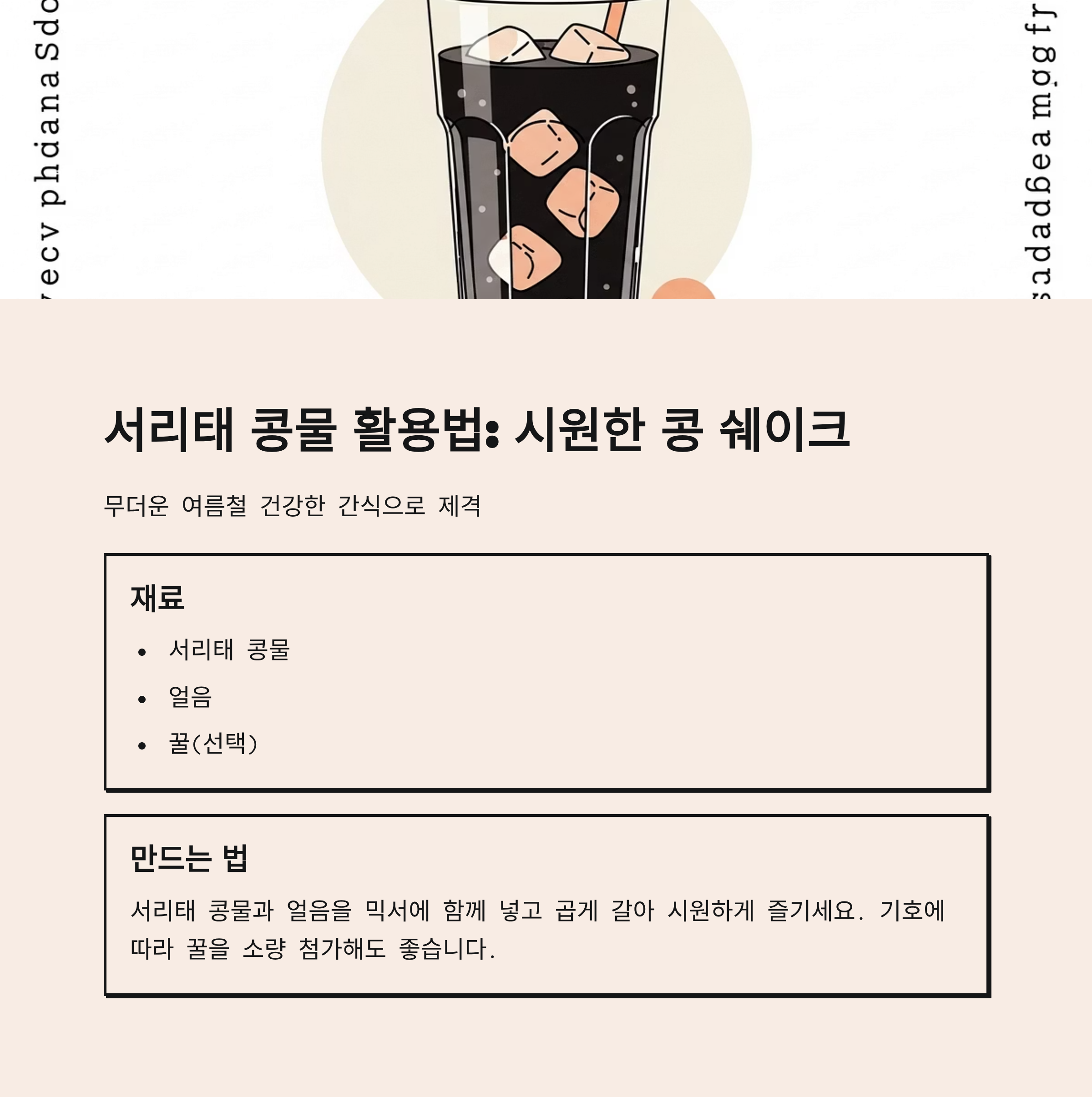 무더운 여름철, 건강한 한 끼나 간식으로 즐기기 좋은 음료 중 하나가 바로 서리태 콩물입니다. 고소하고 진한 맛은 물론, 건강 기능성까지 갖춘 서리태는 40대 이상 중장년층에게 특히 좋은 식재료인데요. 이번 글에서는 서리태 콩물 만드는 방법부터 활용 레시피, 보관법, 건강 효과까지 자세히 소개합니다.