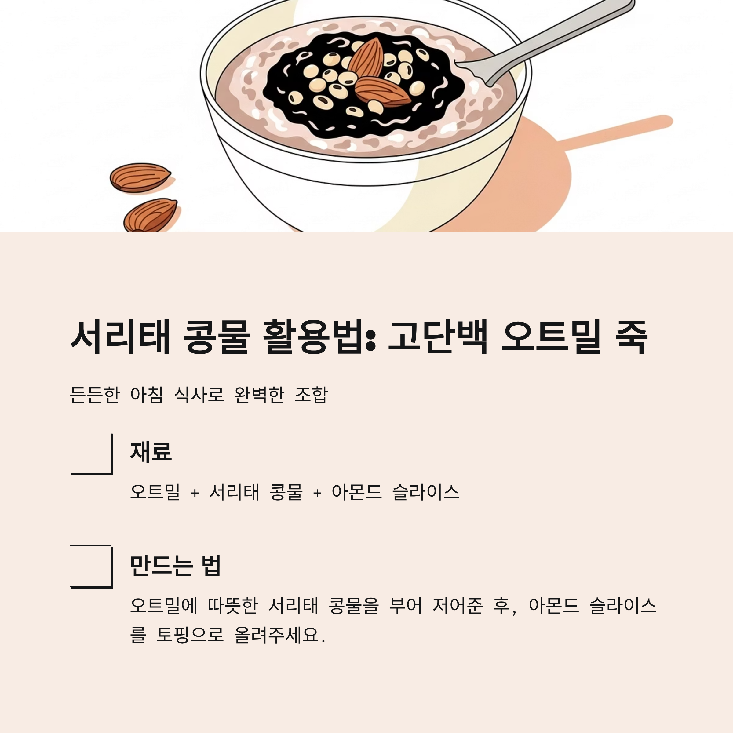 오트밀 + 서리태 콩물 + 아몬드로 아침 대용 식사 - 시원한 간식