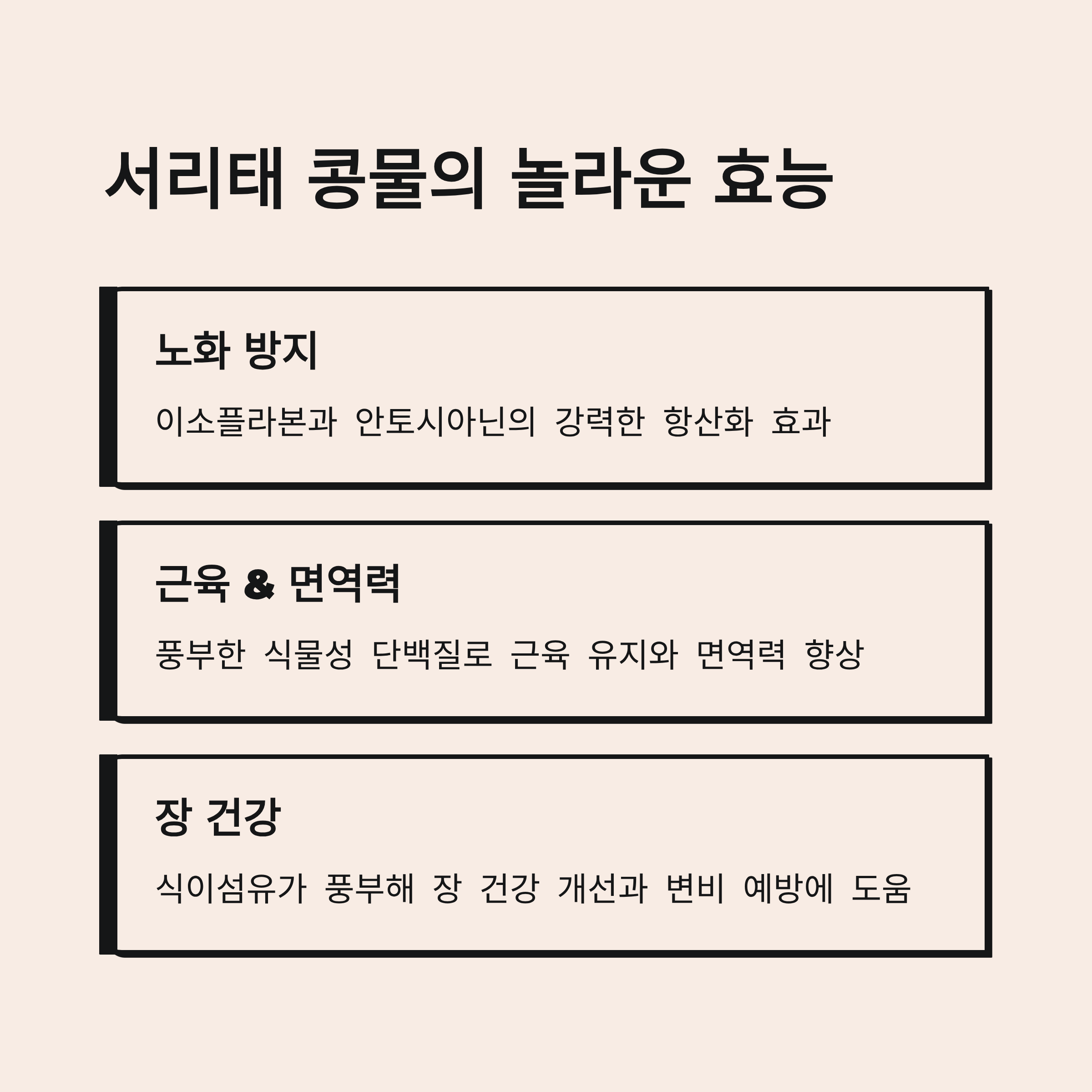 - 식물성 단백질: 근육 유지, 면역력 향상