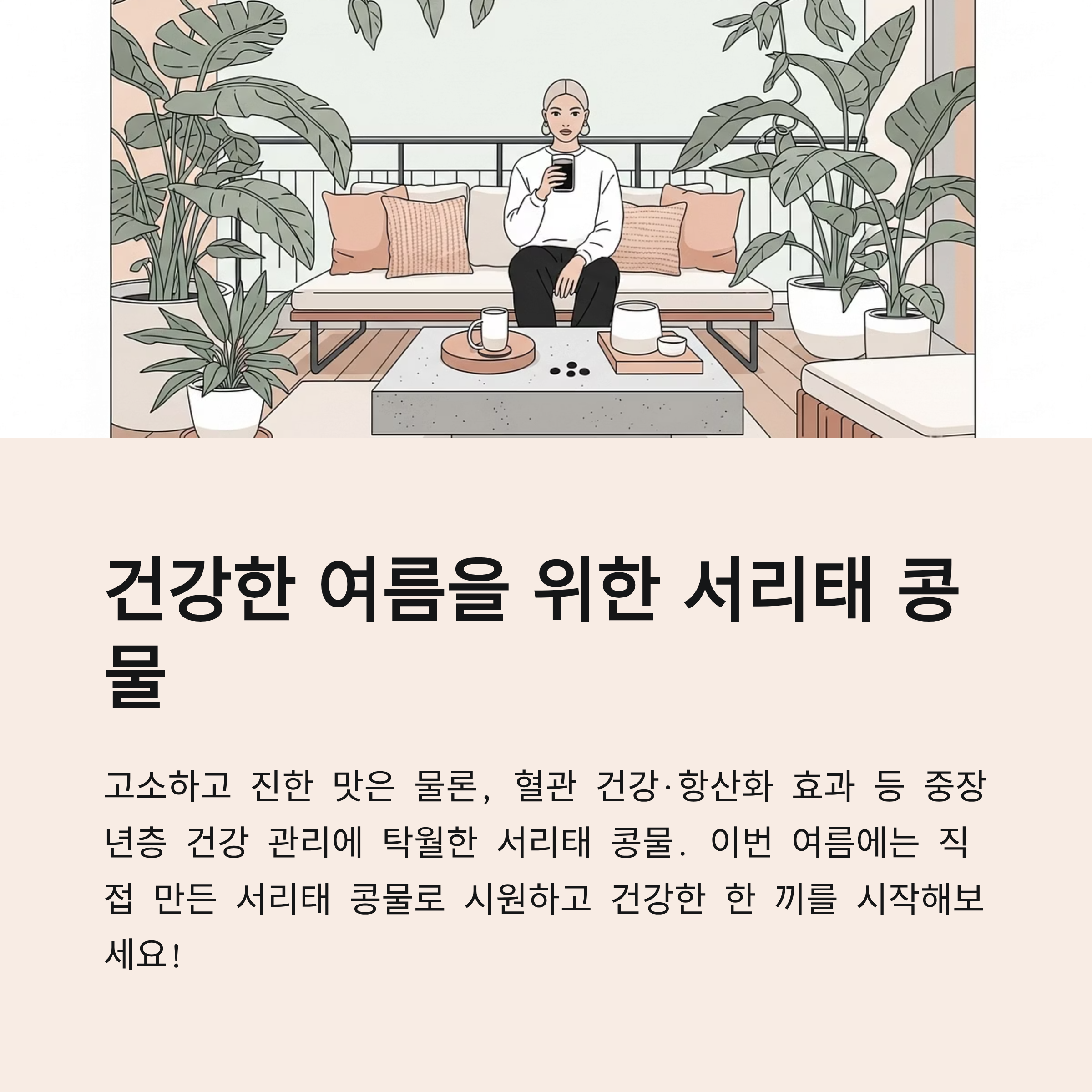 서리태 콩물은 건강한 식생활을 위한 최고의 자연식 음료입니다. 고소하고 깊은 맛은 물론, 혈관 건강·항산화 효과 등 중장년층 건강 관리에 탁월합니다. 서리태 콩물 만드는 방법 과정도 단순해 누구나 쉽게 도전할 수 있으니, 이번 여름에는 직접 만든 서리태 콩물로 시원하고 건강한 한 끼를 시작해보세요!