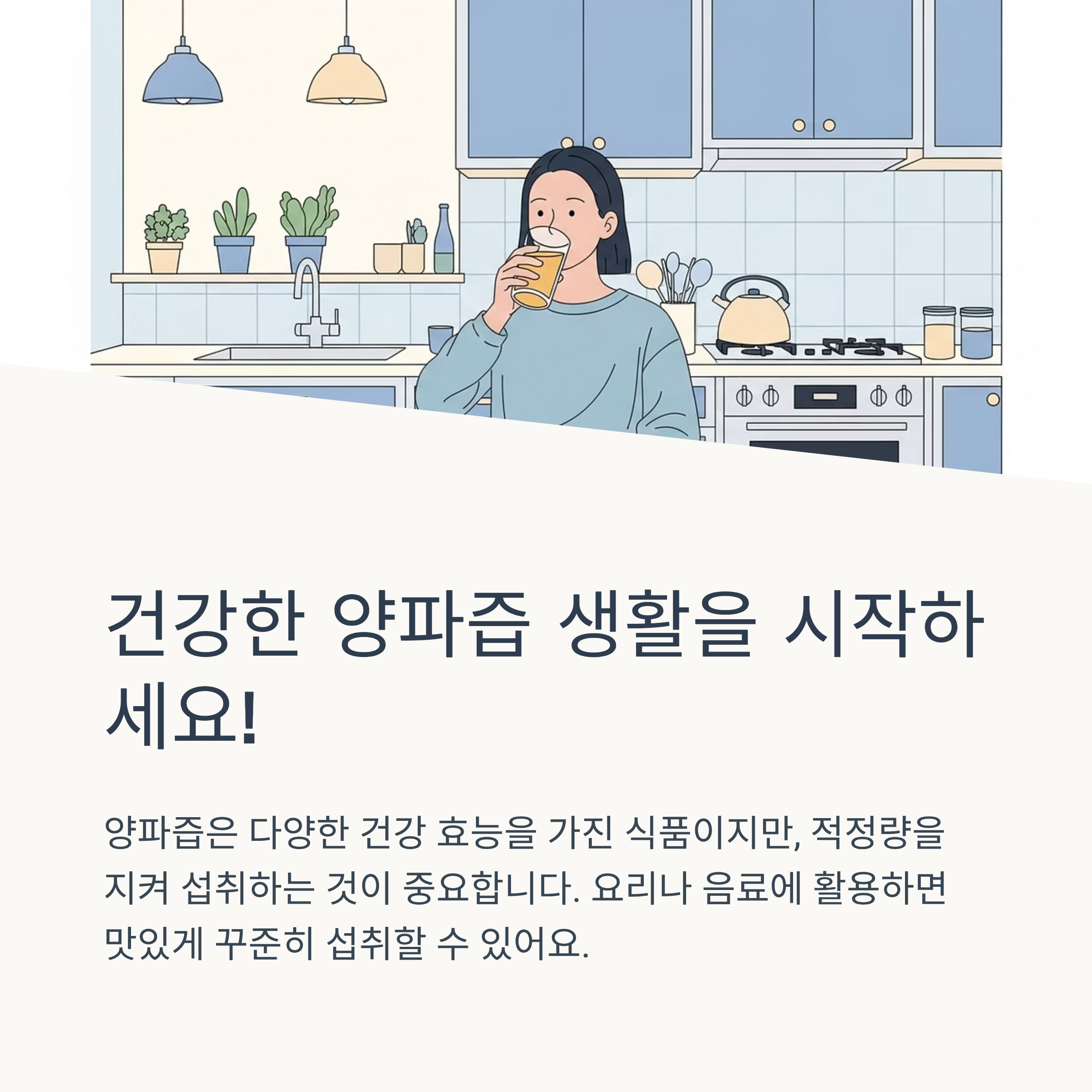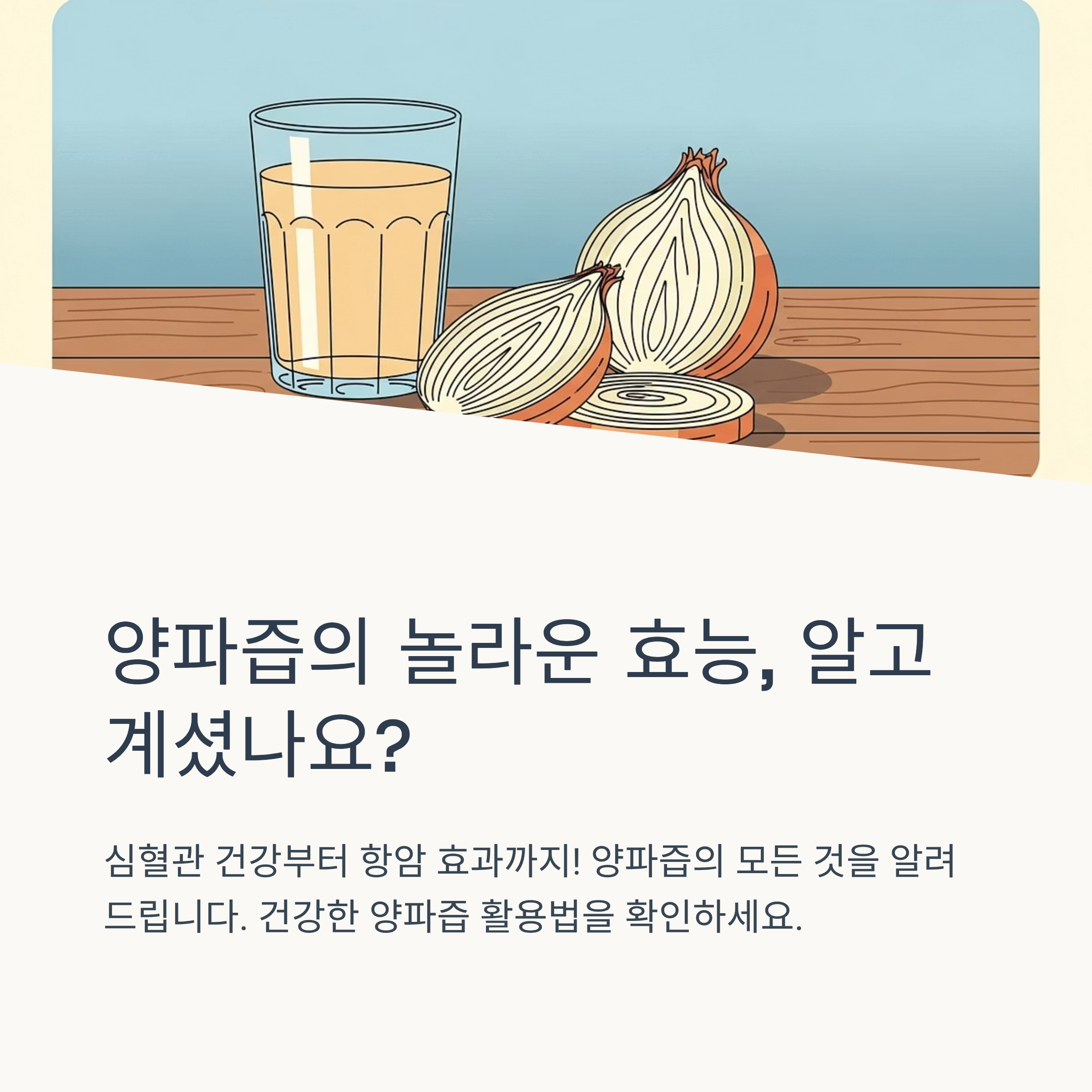 양파즙은 심혈관 건강, 항산화, 면역력 강화 등 다양한 효능을 가진 건강식품입니다. 하지만 위장 장애, 혈당·혈압 변화, 약물 상호작용 등 부작용 가능성도 있으므로 권장량을 지켜 섭취해야 합니다.