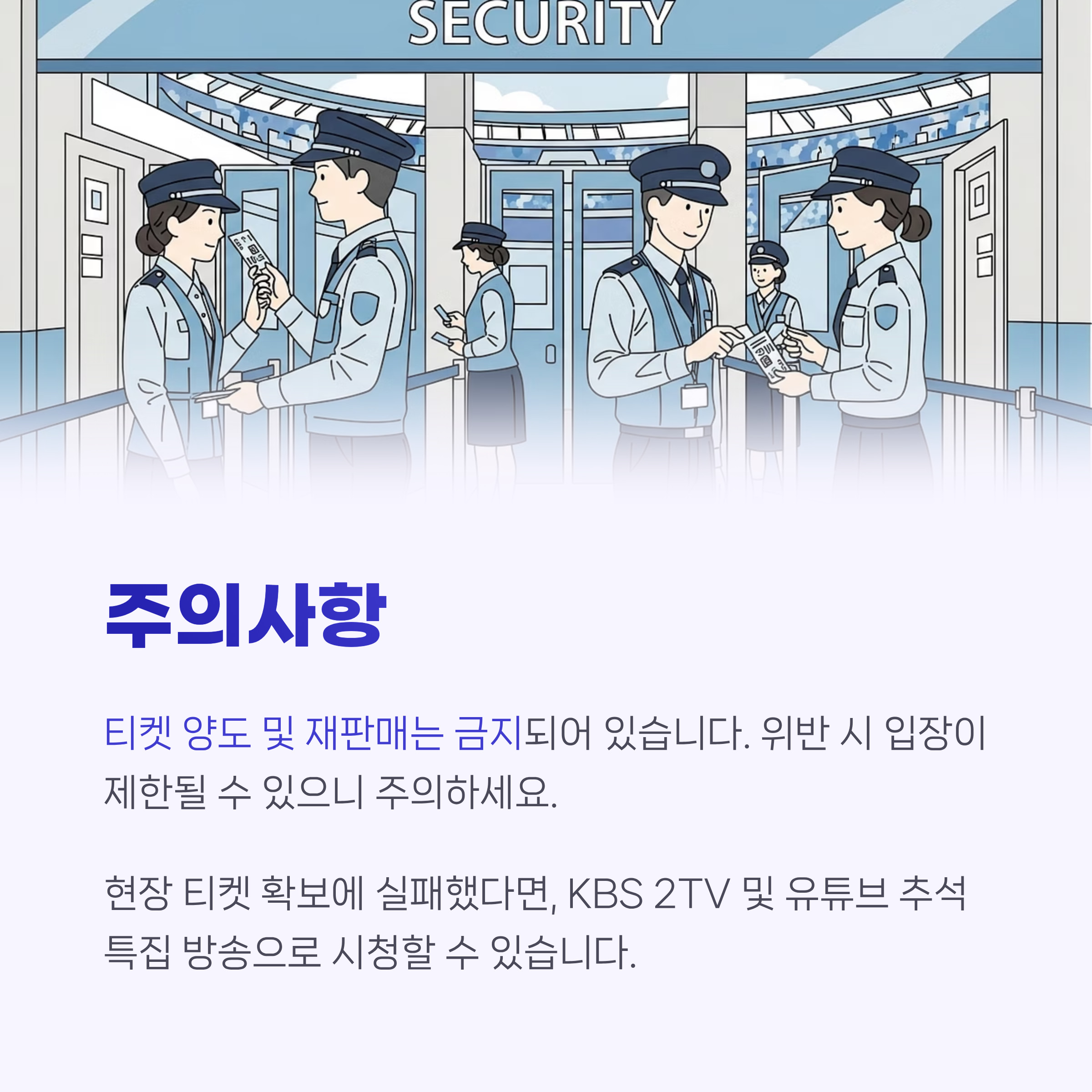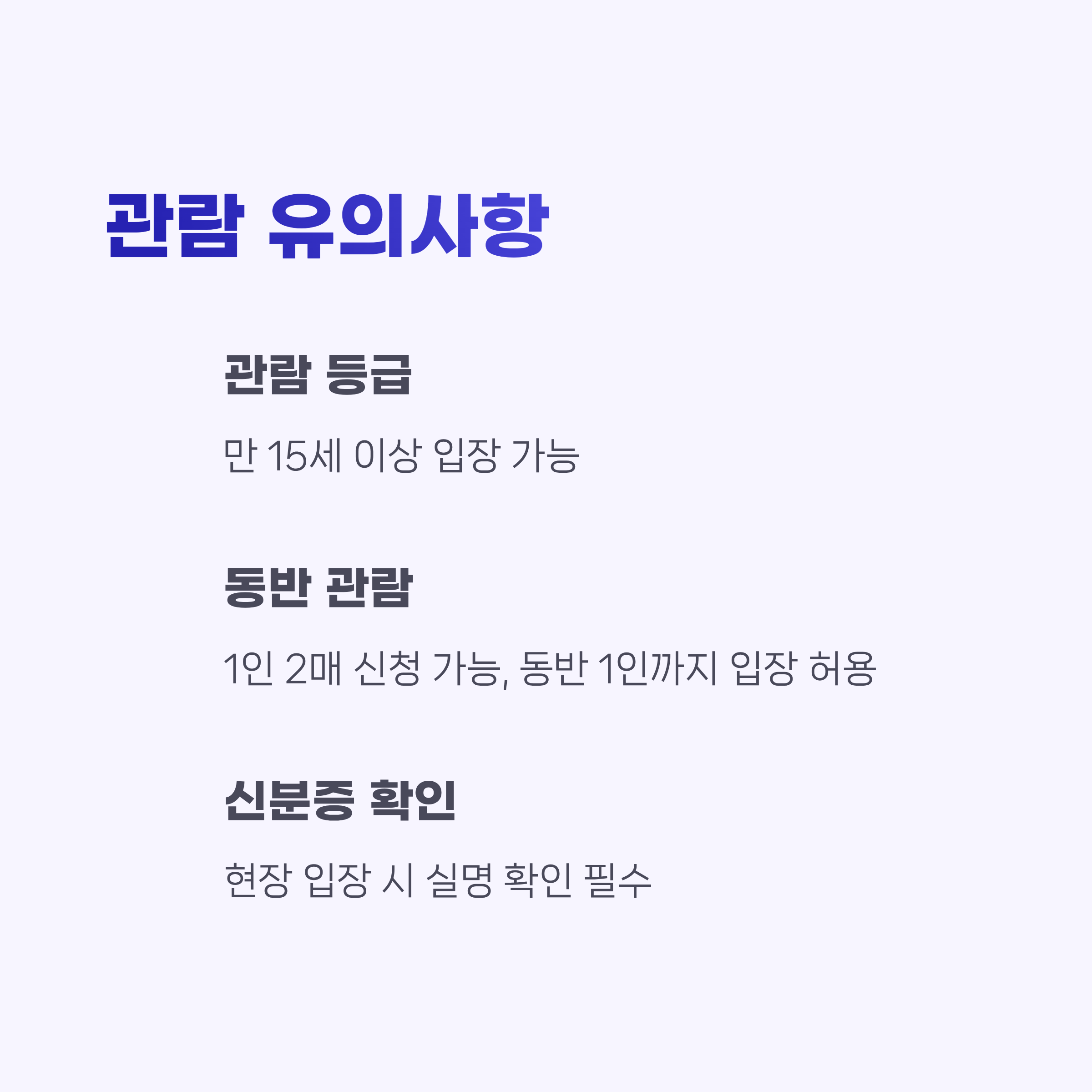 - 신분증 확인: 현장 입장 시 실명 확인 필수