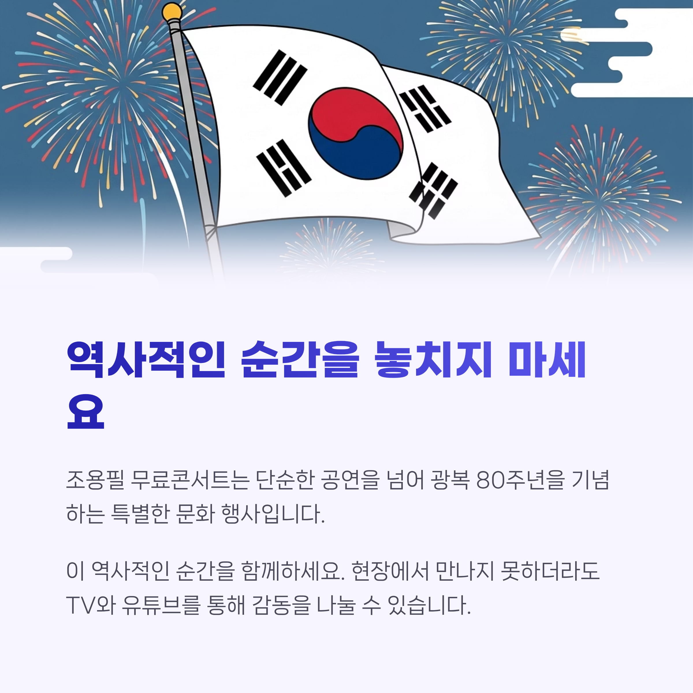 조용필 무료콘서트는 단순한 공연을 넘어 광복 80주년을 기념하는 특별한 문화 행사입니다.
