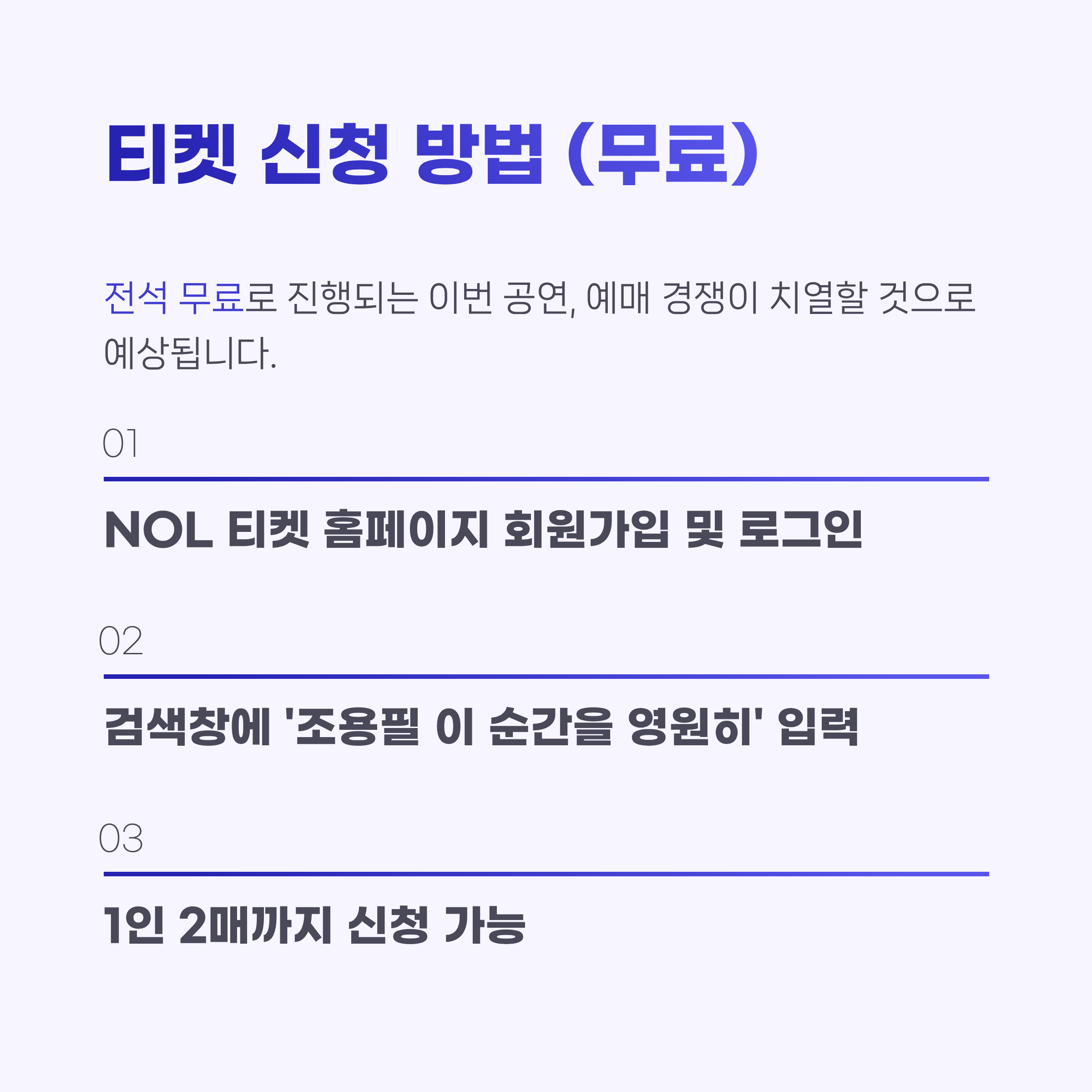 - 신청: NOL 티켓 홈페이지 (1·2차 선착순 및 추첨)