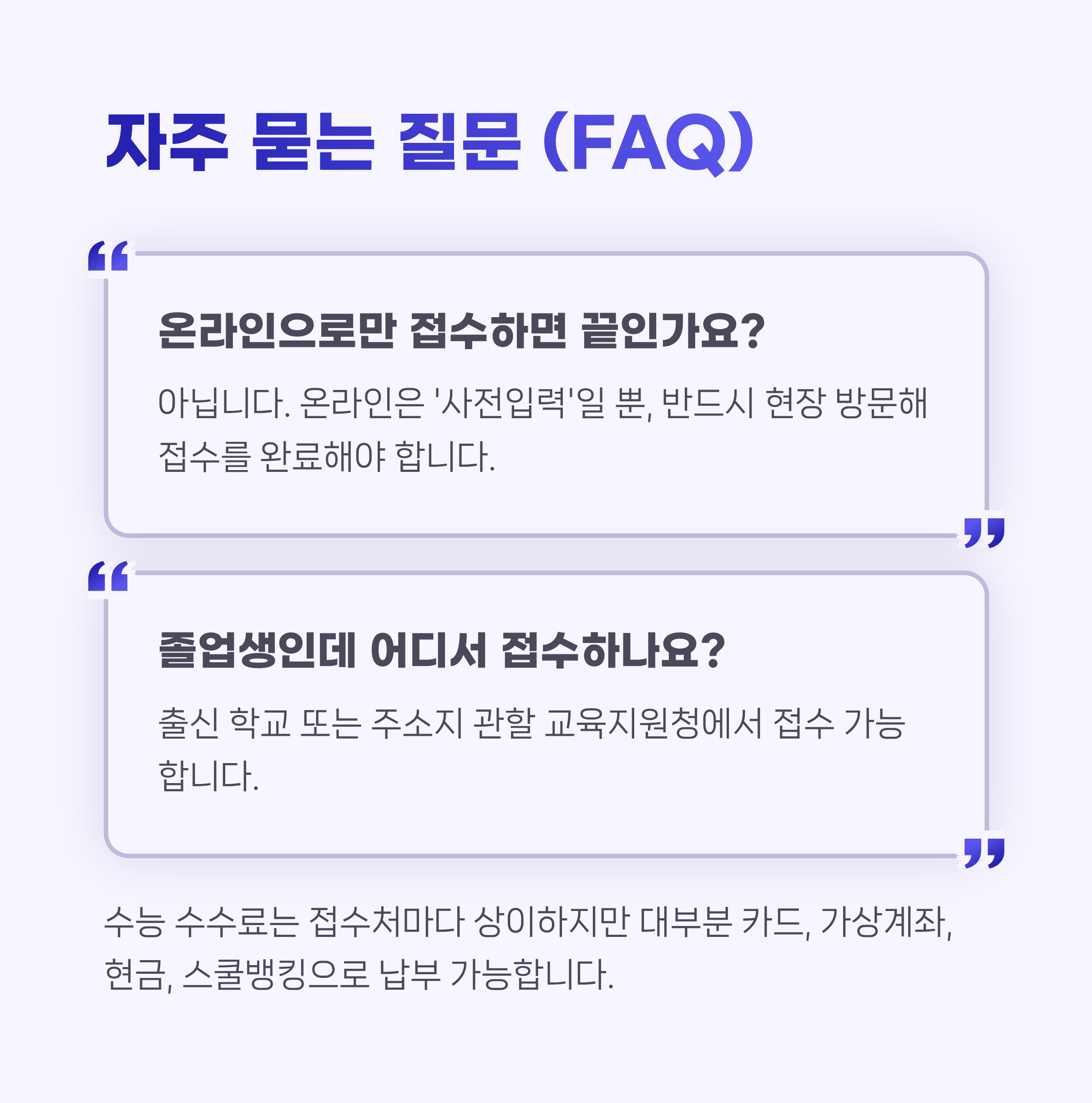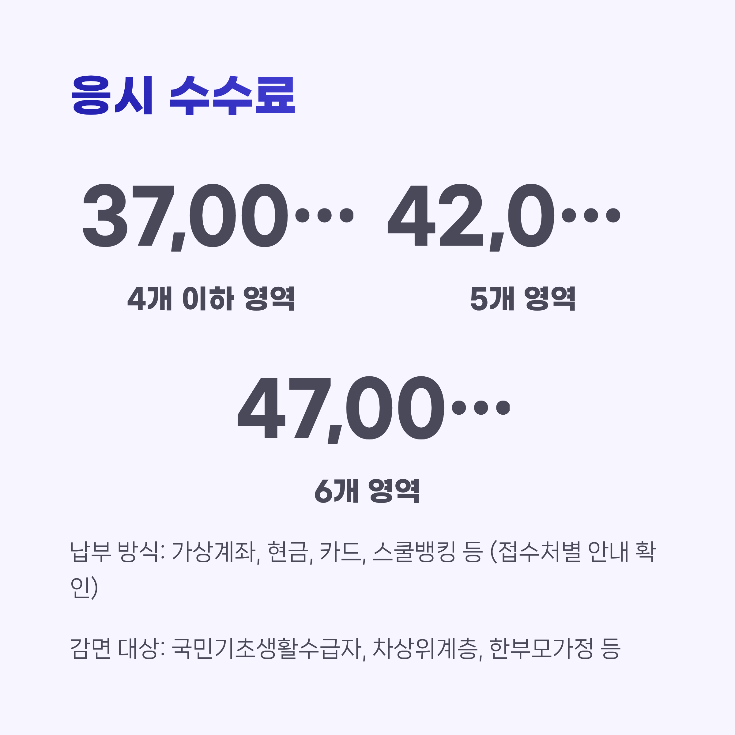 - 납부 방식: 가상계좌, 현금, 카드, 스쿨뱅킹 등 (접수처별 안내 확인)