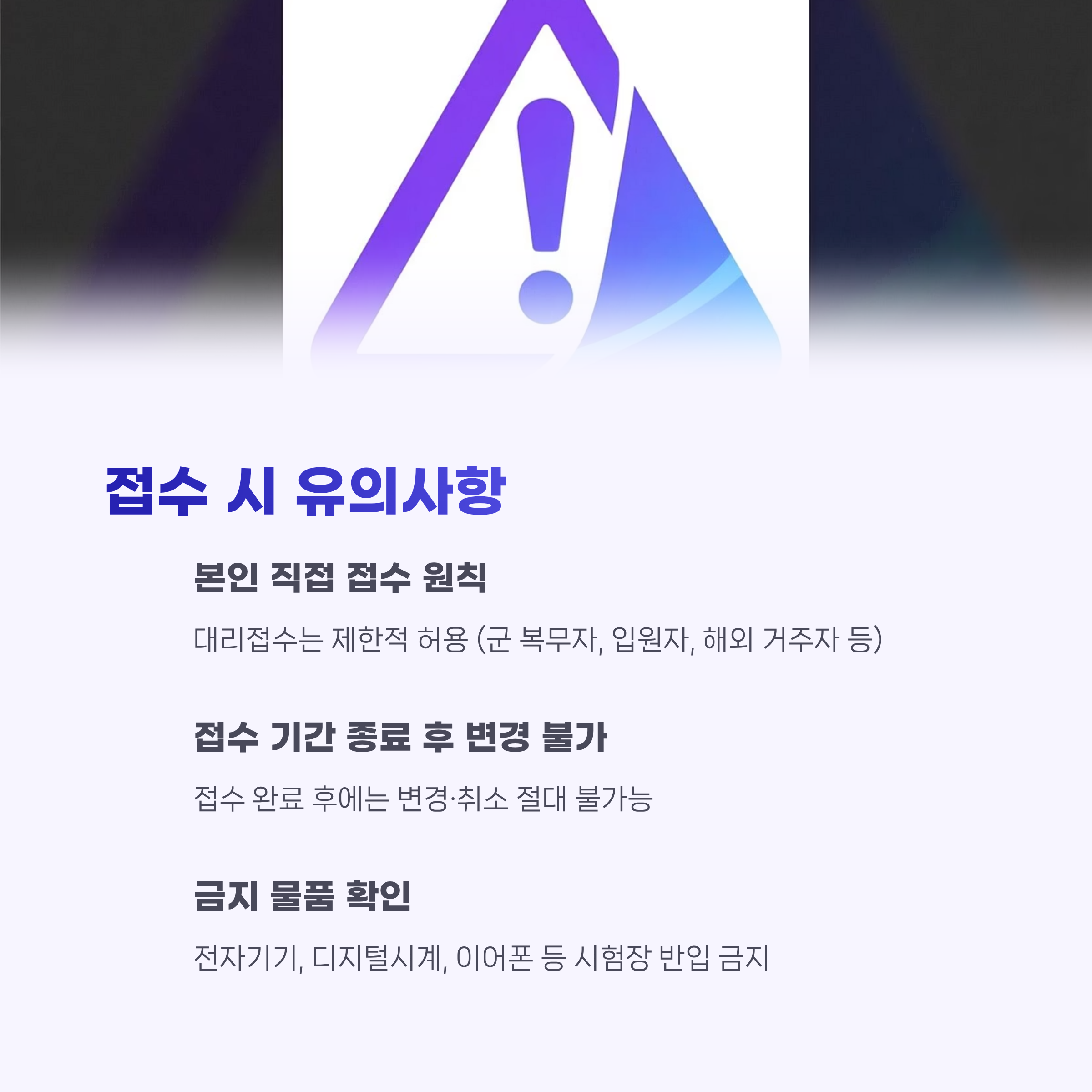 - 접수는 본인 직접 접수 원칙