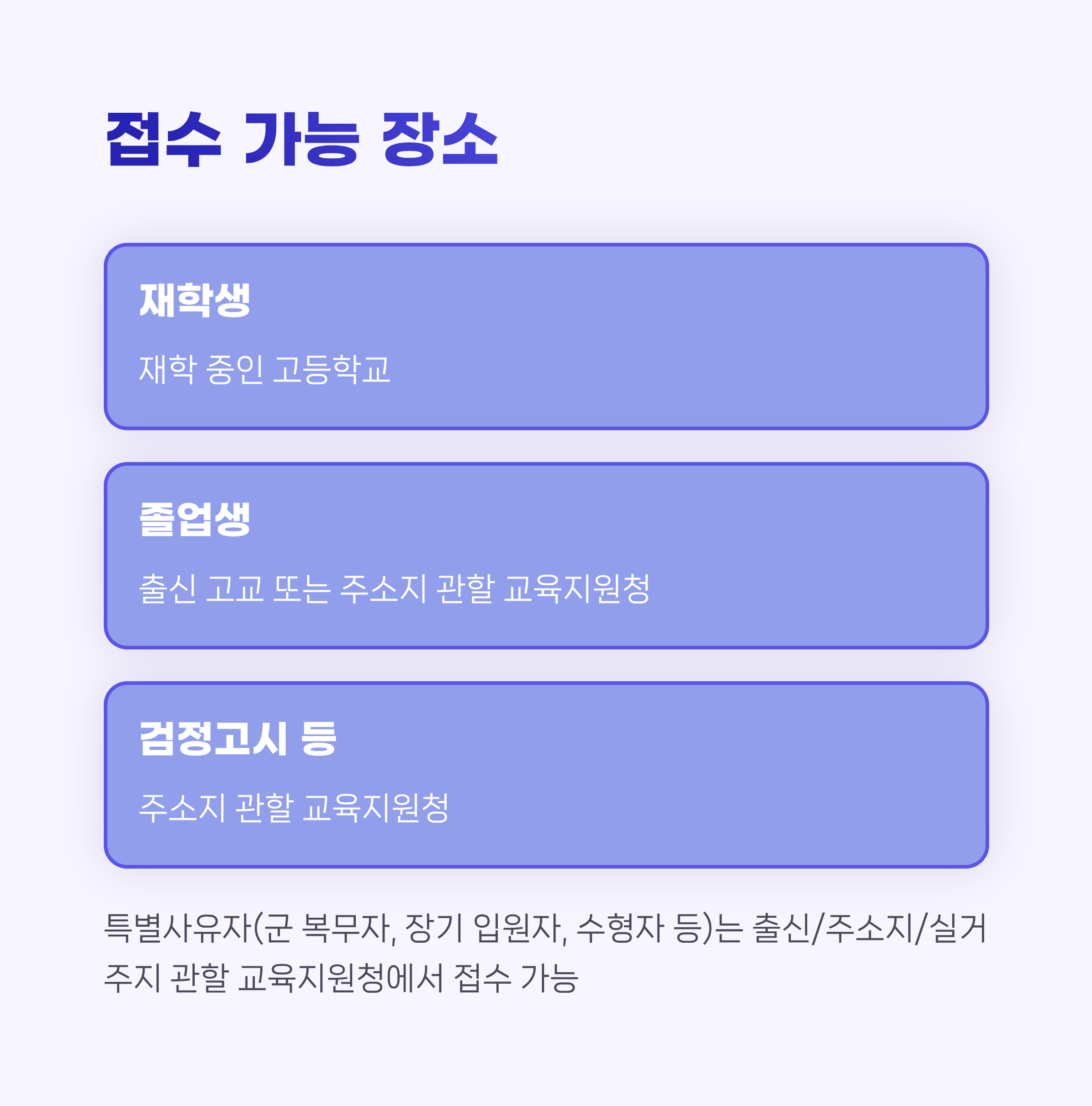 | 특별사유자 | 출신/주소지/실거주지 관할 교육지원청 |