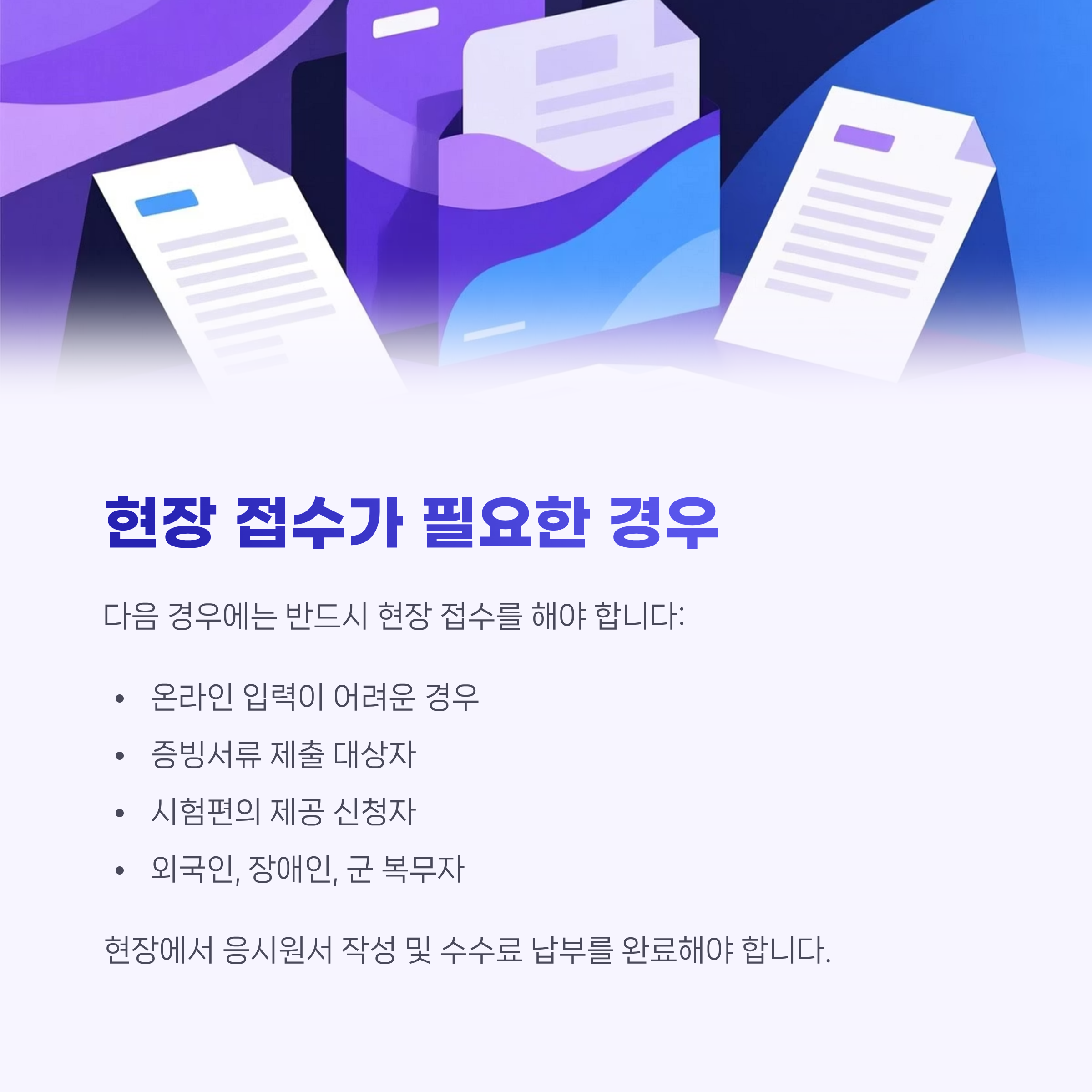 - 이후 반드시 현장 접수처 방문하여 본인 확인 및 최종 접수 완료