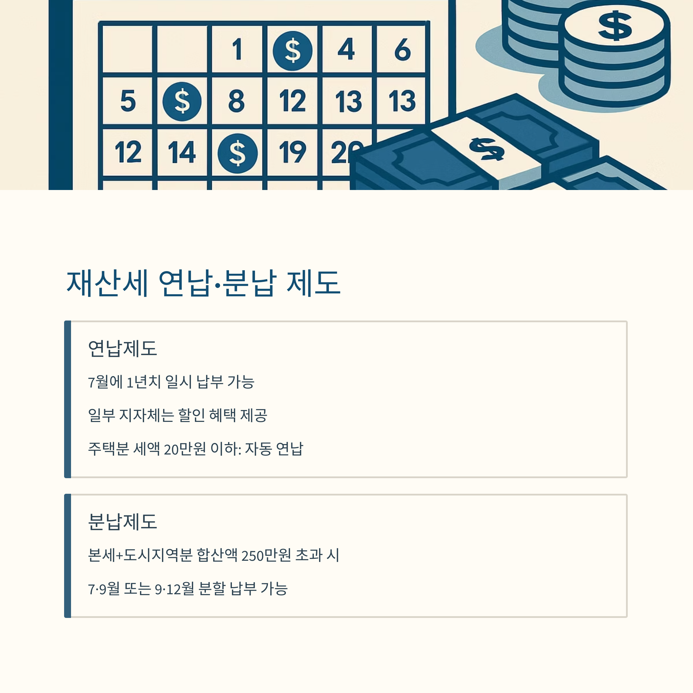 본세+도시지역분 합산액이 250만 원 초과 시 분납 신청 가능- 납부 시기: 7·9월 또는 9·12월 분할 납부 가능