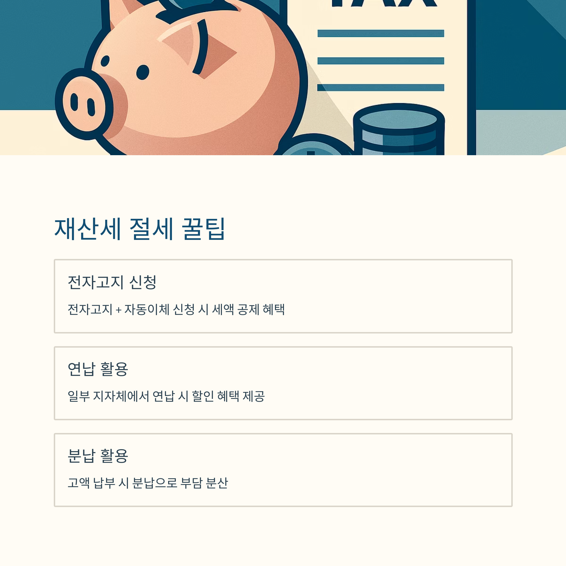 - 자동이체 신청: 위택스, 은행, 지로 가능 (전자고지와 함께 신청 시 공제 혜택 있음)