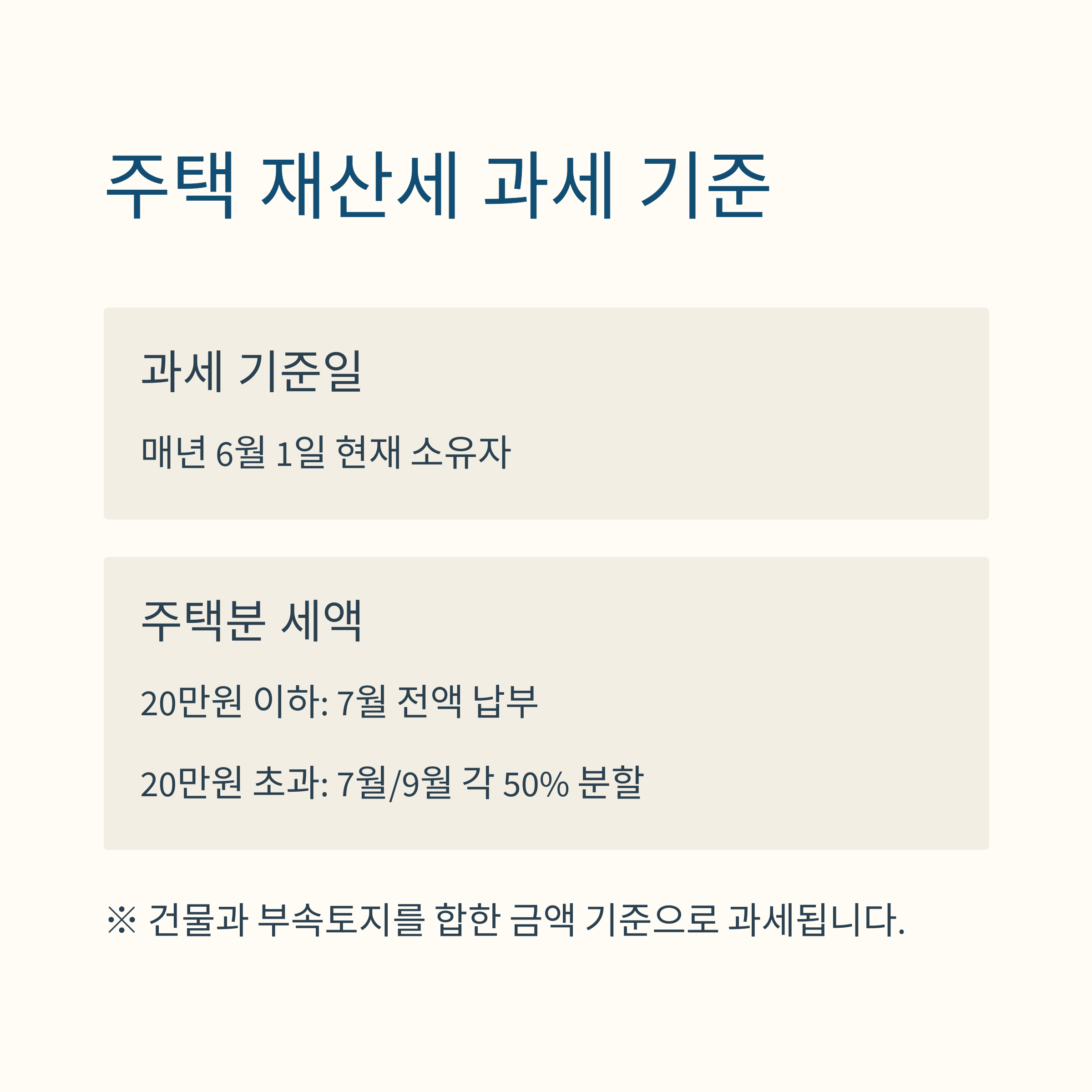 | 주택분 세액 | 20만 원 이하: 7월에 전액 부과 |
