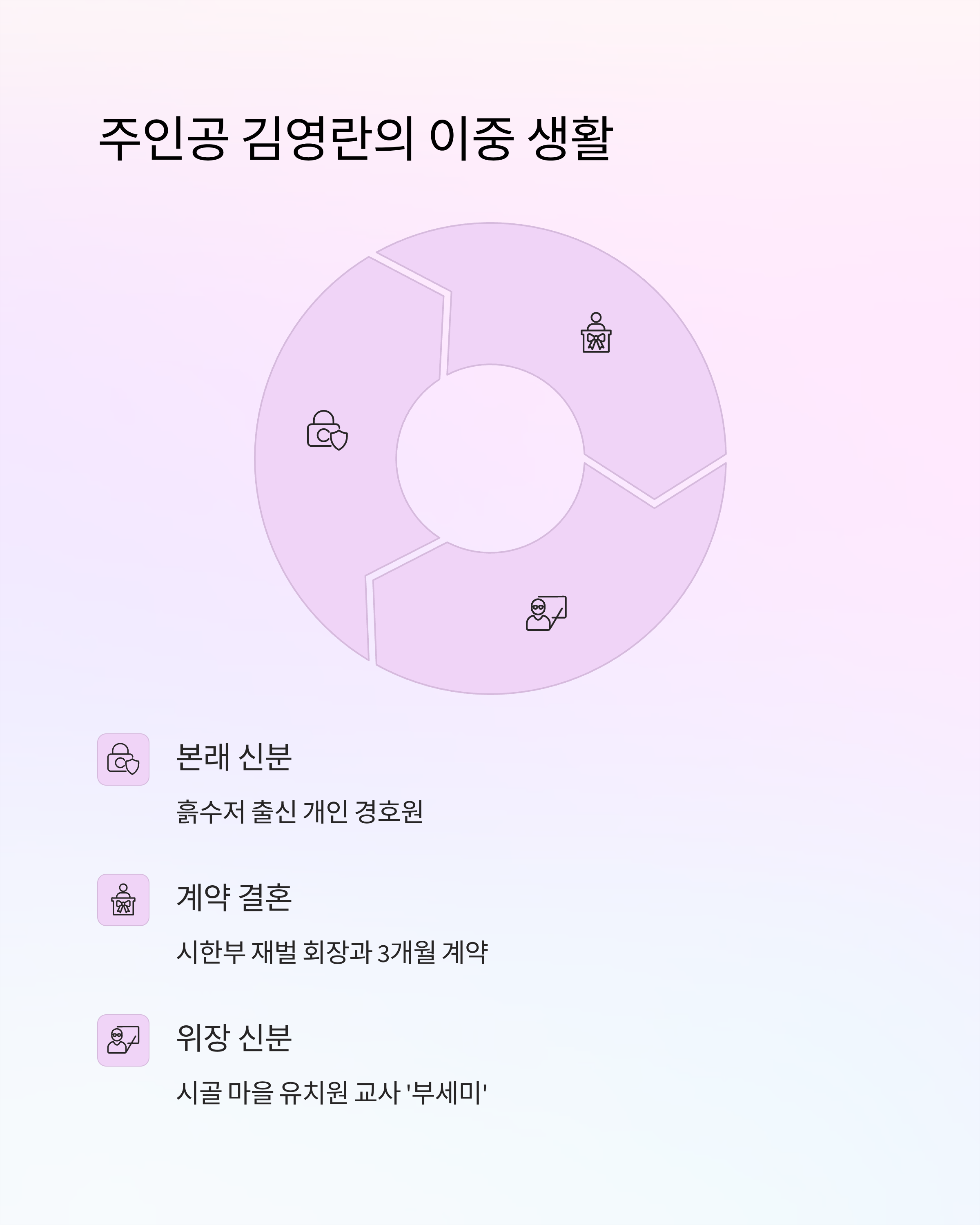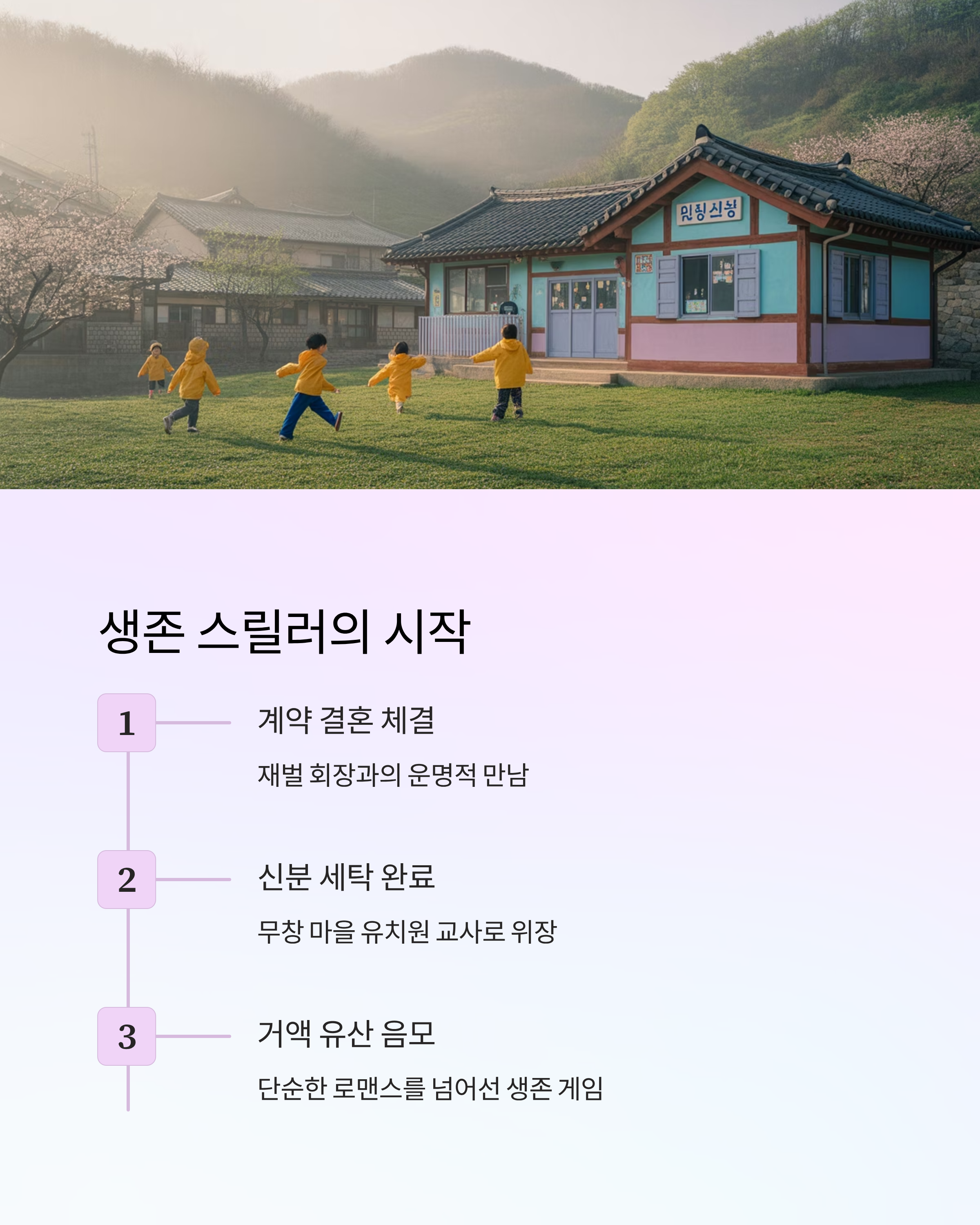 | 주제 | 신분세탁, 계약결혼, 재벌가 암투, 생존 로맨스 |