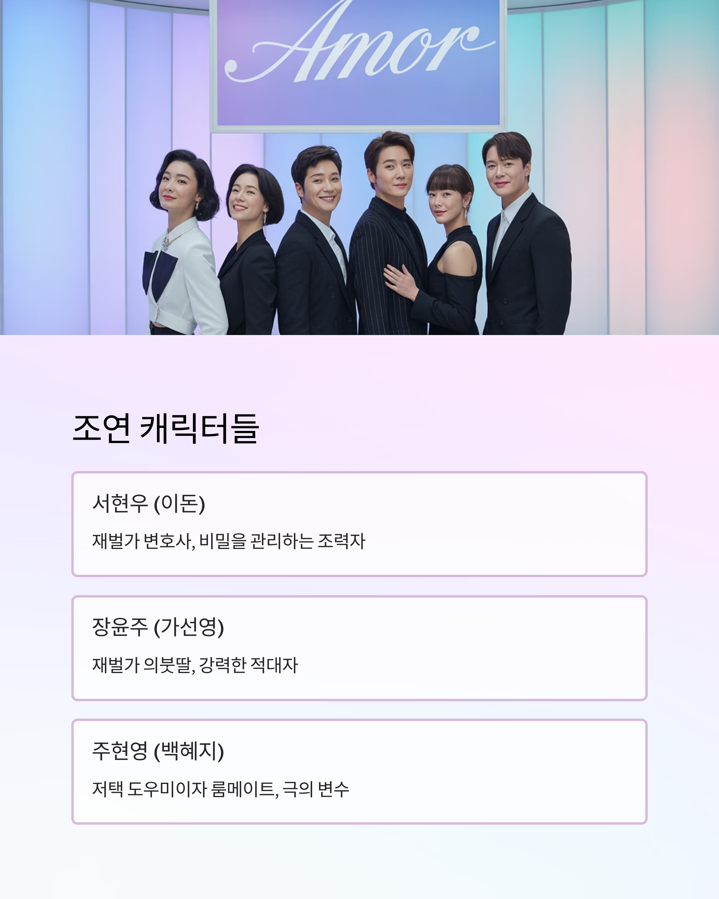 | 이돈 | 서현우 | 재벌가 변호사, 비밀을 관리하는 조력자 |