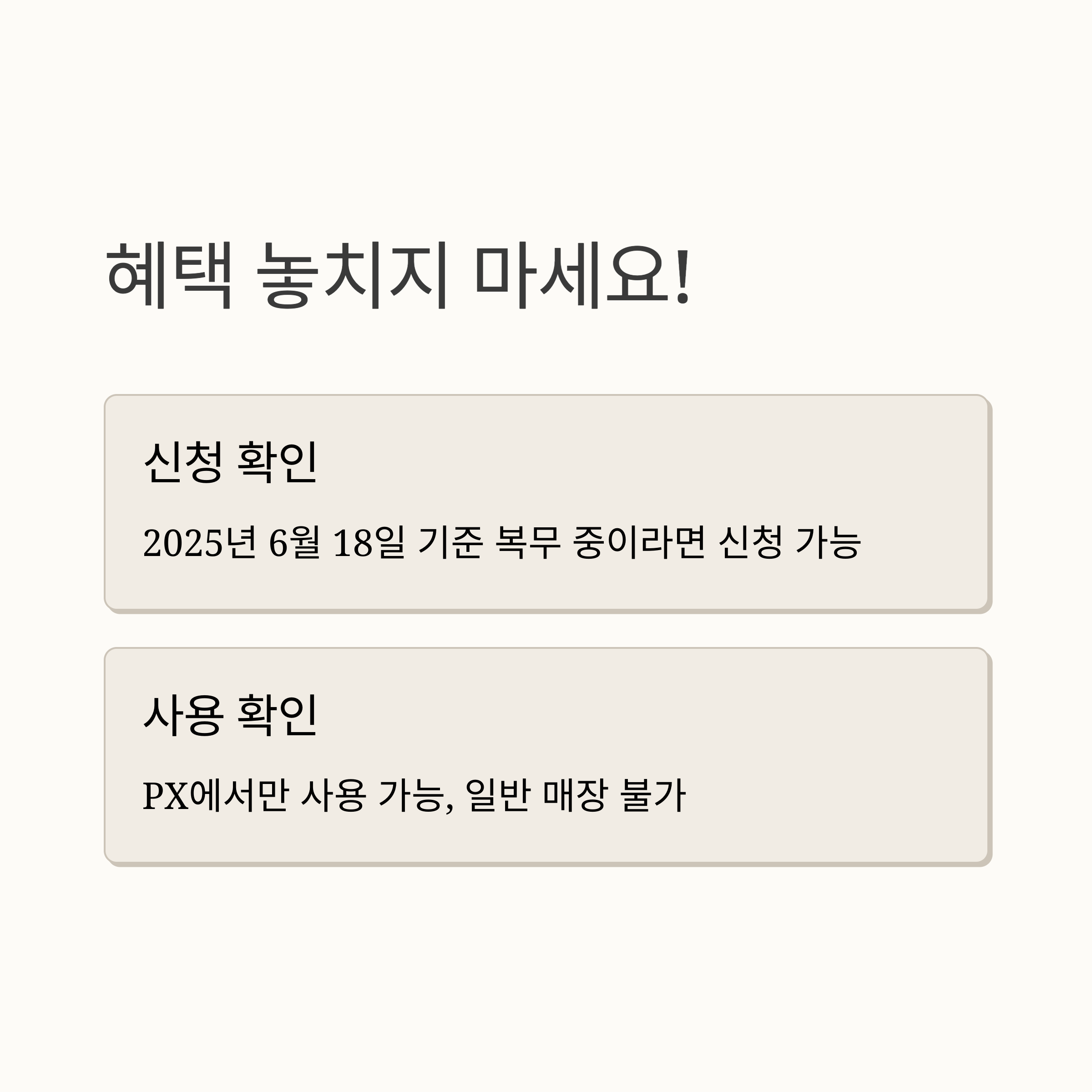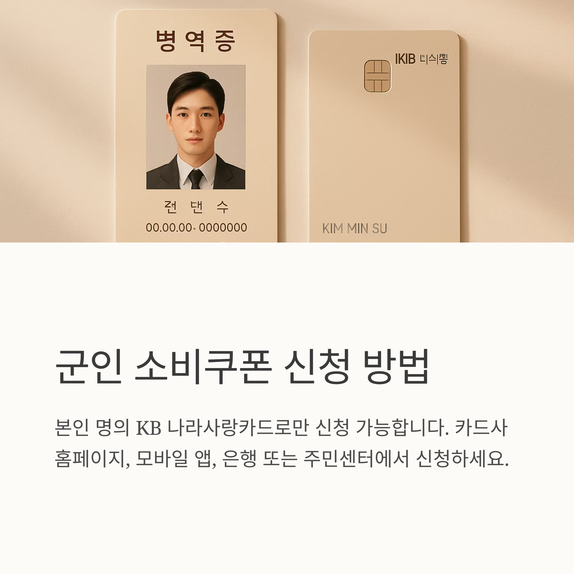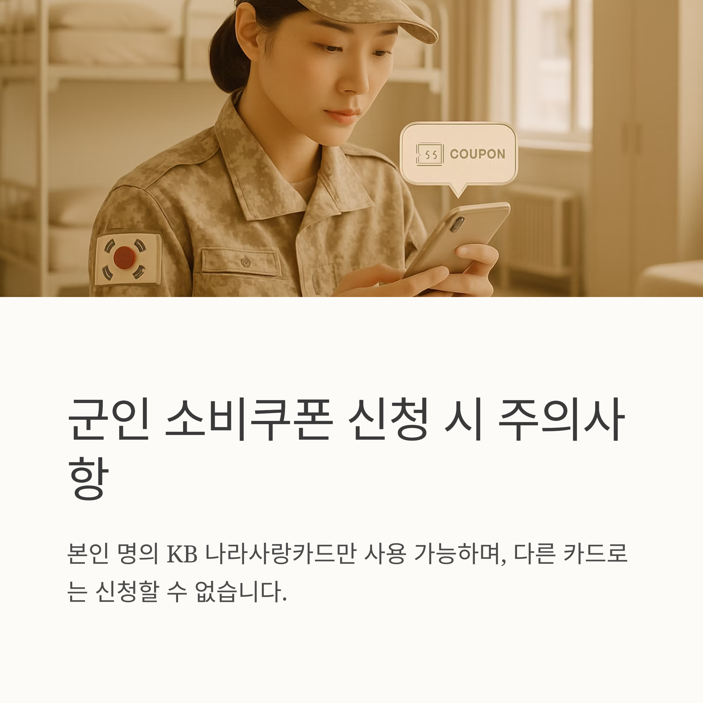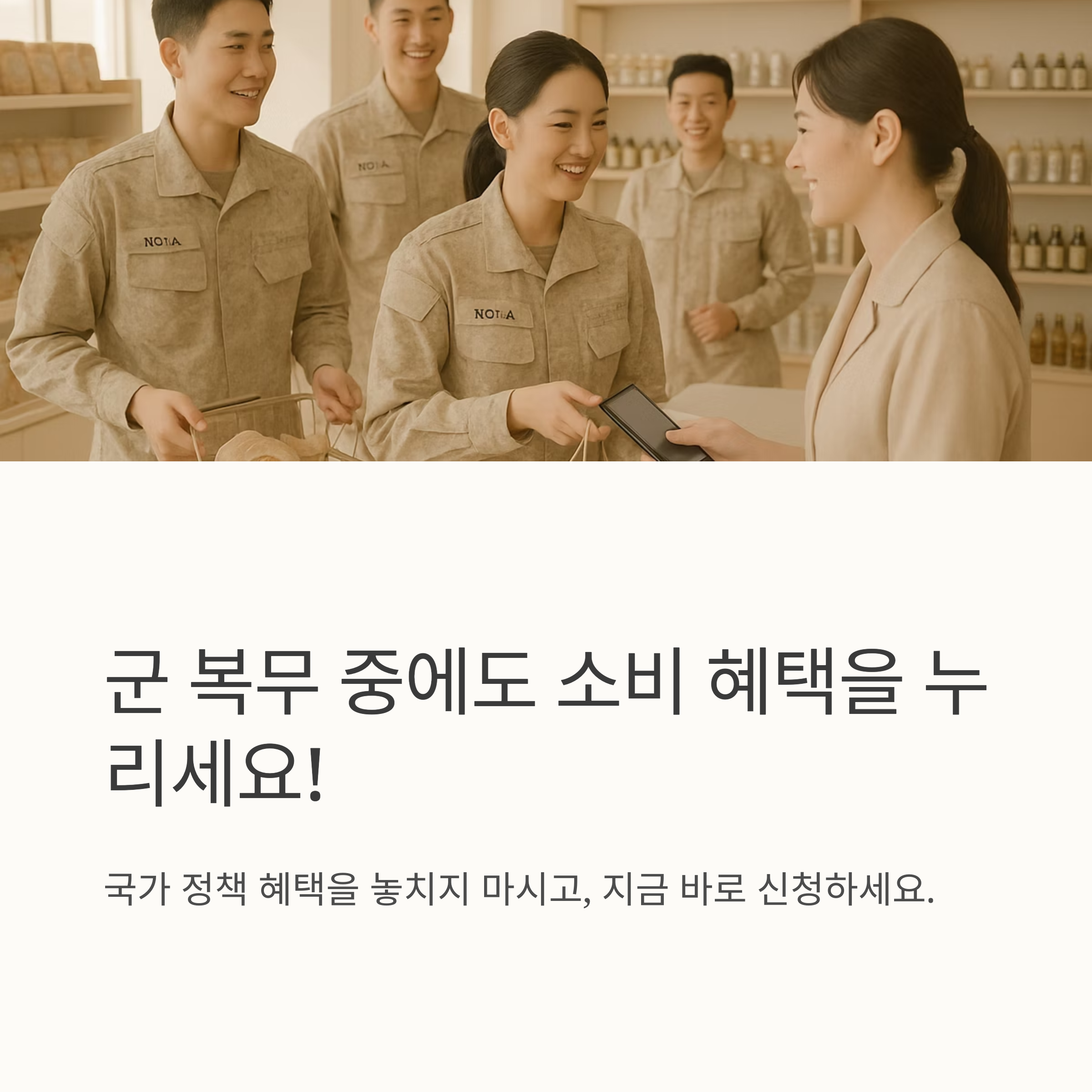 국가 정책 혜택을 놓치지 않으려면 지금 바로 신청하시고, 군 복무 중에도 합법적 소비 혜택을 누리시길 바랍니다.