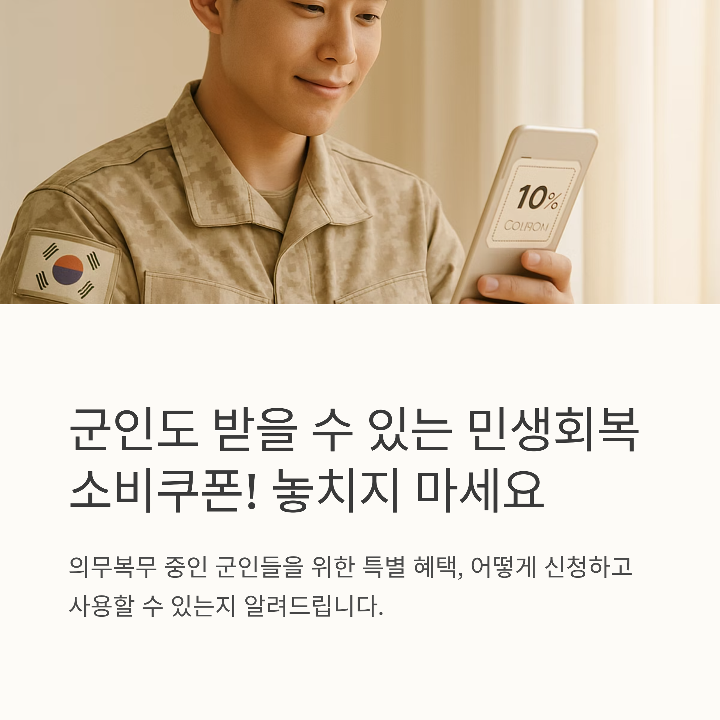 오늘은 군인을 위한 민생회복 소비쿠폰 신청 조건, 지급 방식, 사용처까지 상세히 정리해드립니다.
