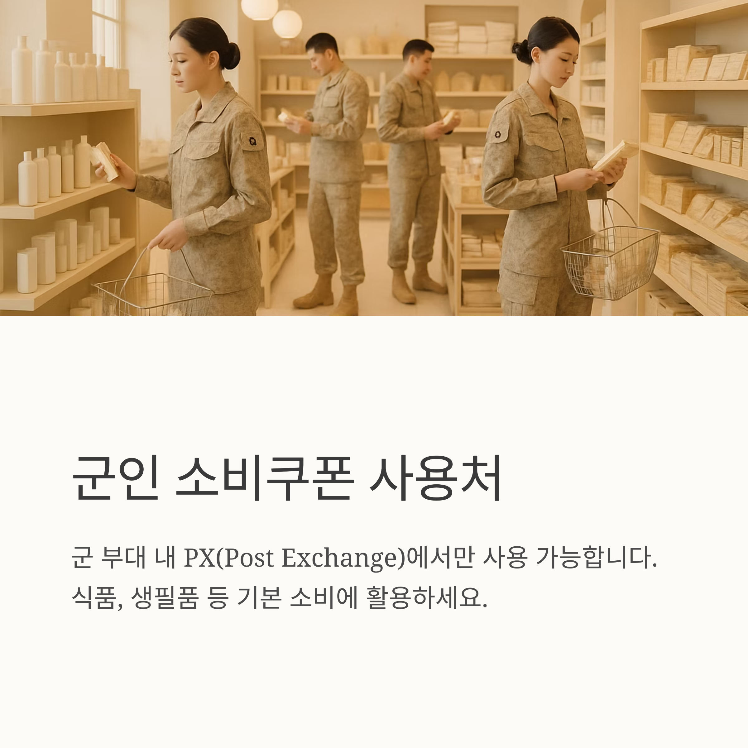 | 사용처 | 군 PX(부대 내 매점) 전용 사용 |