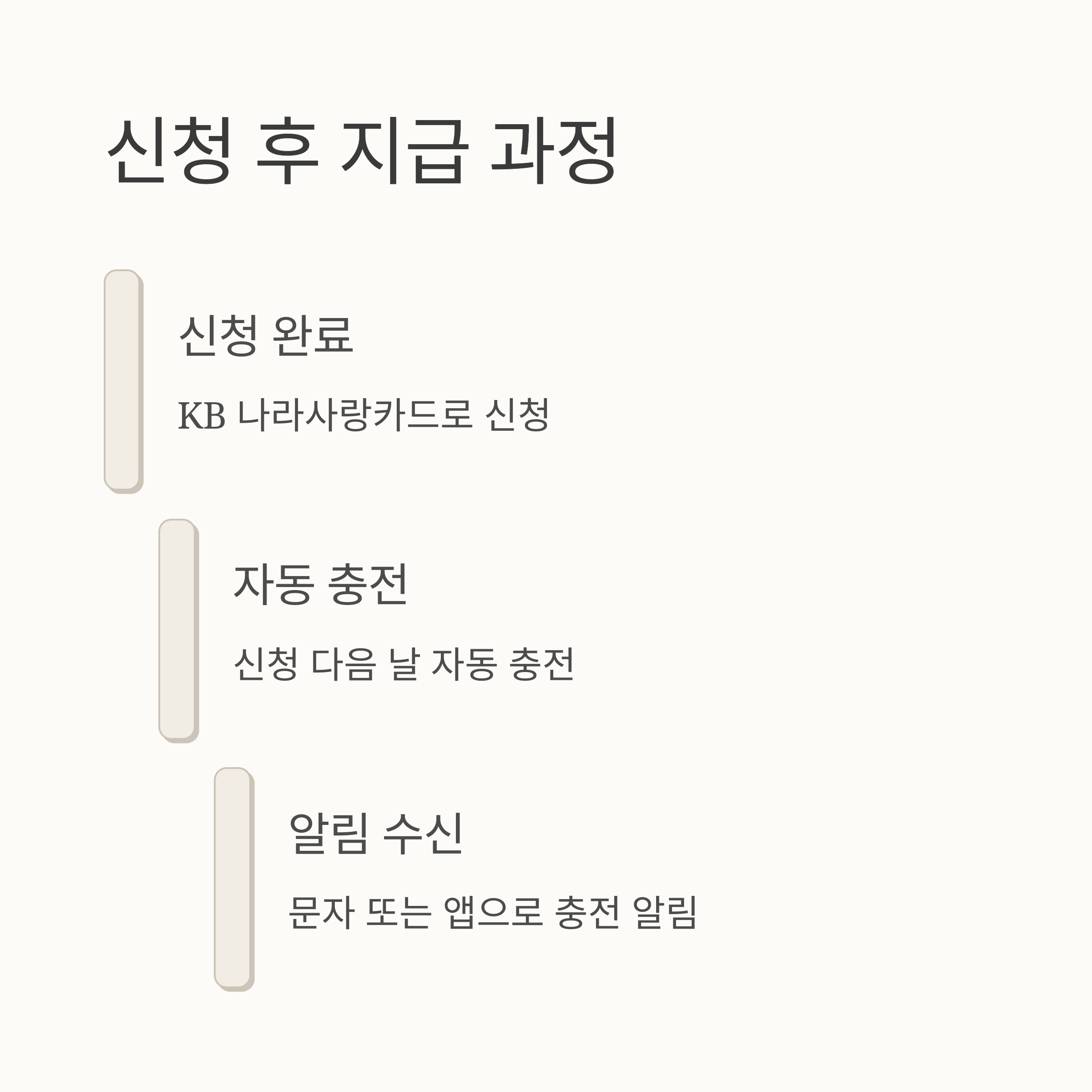 - 신청 완료 후 다음 날 자동 충전, 문자 또는 앱 알림 수신