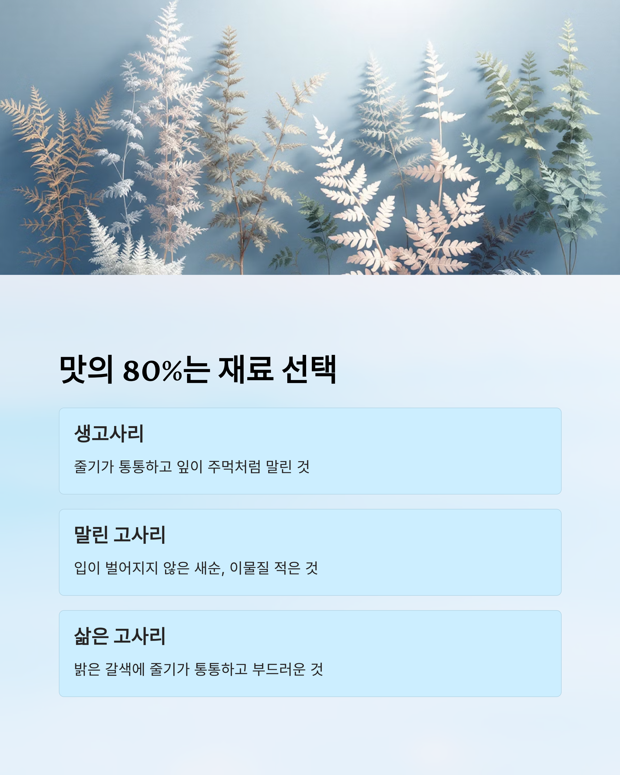 1. 고사리 고르는 법 – 맛의 80%는 재료 선택에서 시작된다