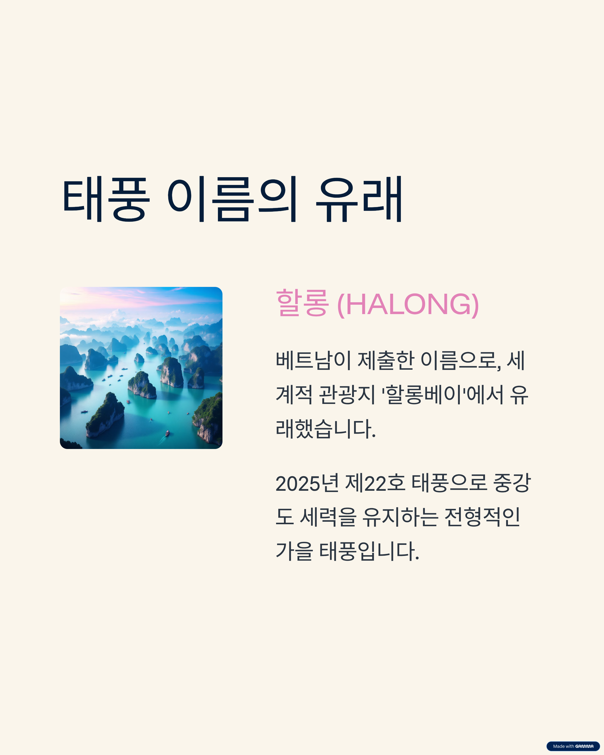 - 한편, ‘할롱(HALONG)’이라는 이름은 베트남이 제출한 이름으로, 세계적으로 유명한 관광지 ‘할롱베이’에서 유래한 이름입니다.