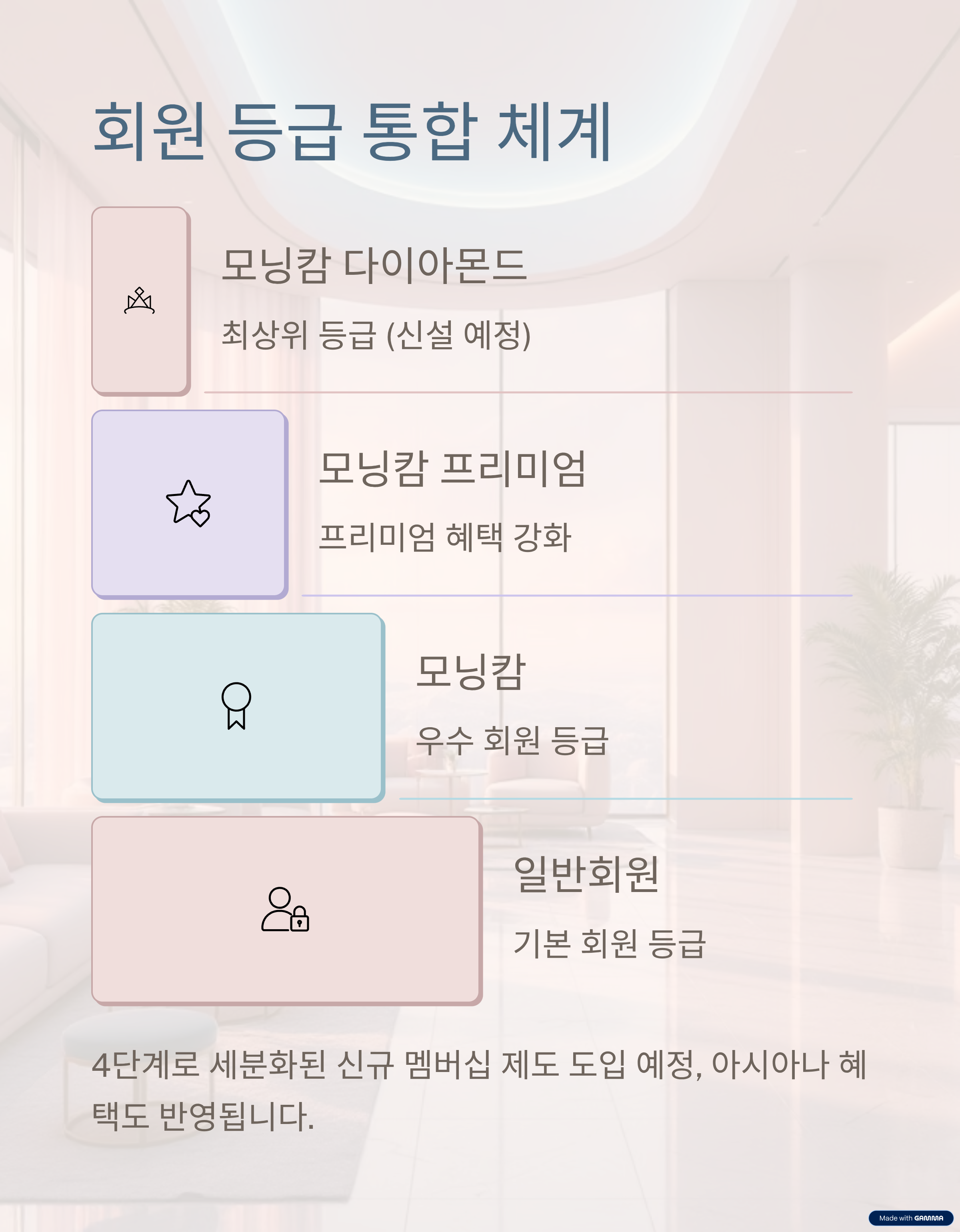 | 회원 등급 | 4단계로 세분화 예정, 아시아나 혜택 반영 |